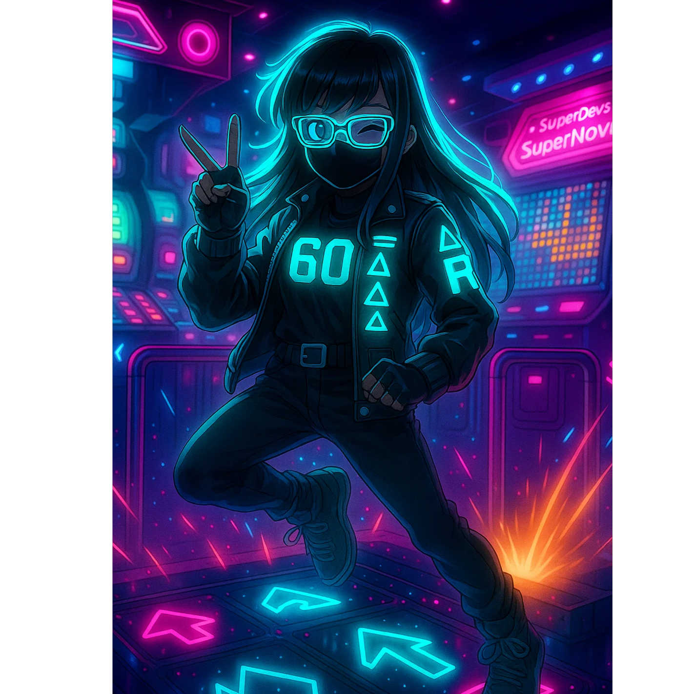 A vibrant J-Pop arrangement opens with bright synthesizers and crisp percussion, layering in punchy electronic drums and bouncing bass, The clean female vocals drive catchy melodies, while stacked harmonies and group chants elevate the energy in the pre-chorus and chorus sections, Krautrock-inspired motorik rhythms fuse with groovy basslines, creating a hypnotic yet danceable flow, Rave elements surge in with explosive buildups, ecstatic drops, and euphoric synth stabs, amplifying the high-energy atmosphere, Touches of chiptune sparkle throughout, with playful 8-bit arpeggios and retro flourishes that add a colorful, nostalgic edge to the track’s vibrant soundscape
