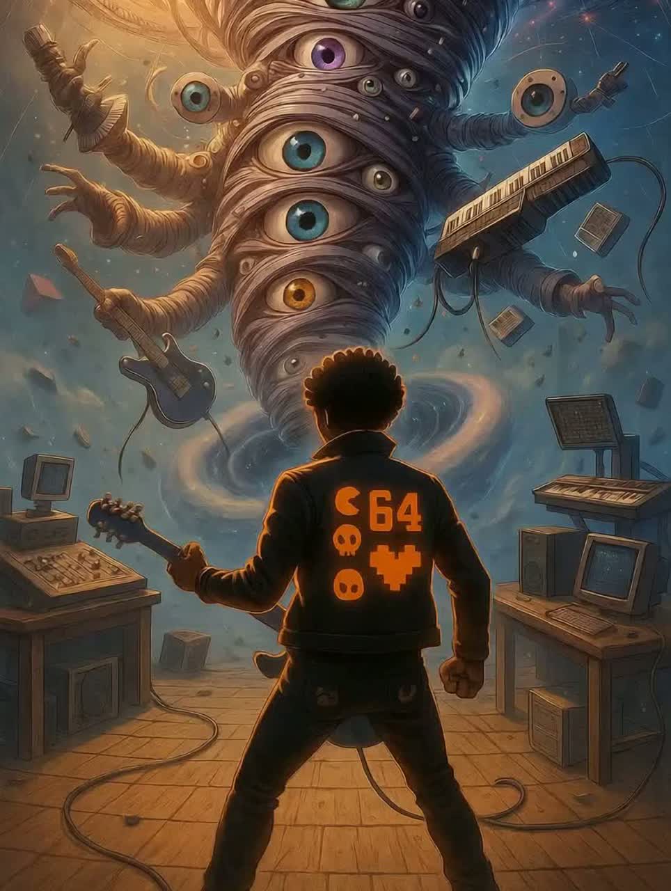 A groovy experimental Pop Rock meets Nintendocore explosion, with crunchy distorted guitars colliding with playful chiptune melodies, punchy 8-bit drum fills, and funky disco-inspired basslines, Verses keep it tight and bouncy with retro game sounds and cheeky vocal snippets, while choruses burst into a contagious dancefloor anthem, blending rocking guitar riffs, glittering synth arpeggios, and shimmering disco hi-hats, Infectious handclaps, syncopated rhythms, and pixelated sound effects drive the energy, making it feel like a neon-lit arcade party with unstoppable momentum