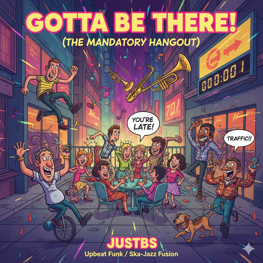 Upbeat Funk / Ska-Jazz Fusion, Fast-Tempo (170 BPM), Hyper-Rhythmic Vocal Delivery (Humorous and Snarky Tone), Loud and Syncopated Brass Stabs, Off-Beat Guitar Skanking, Driving Upright Bass, Intricate Drumming, Relatable Chaos Anthem, Song in English language