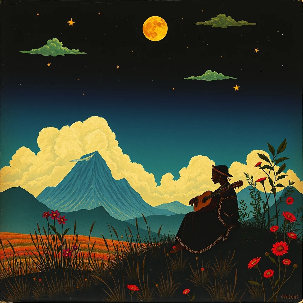 haunted spirit of the land, folk, pop, melodic, rhythmic, warm, regional music, world, calypso, traditional Japanese koto, ambient textures, ethereal pads, reverberant beats