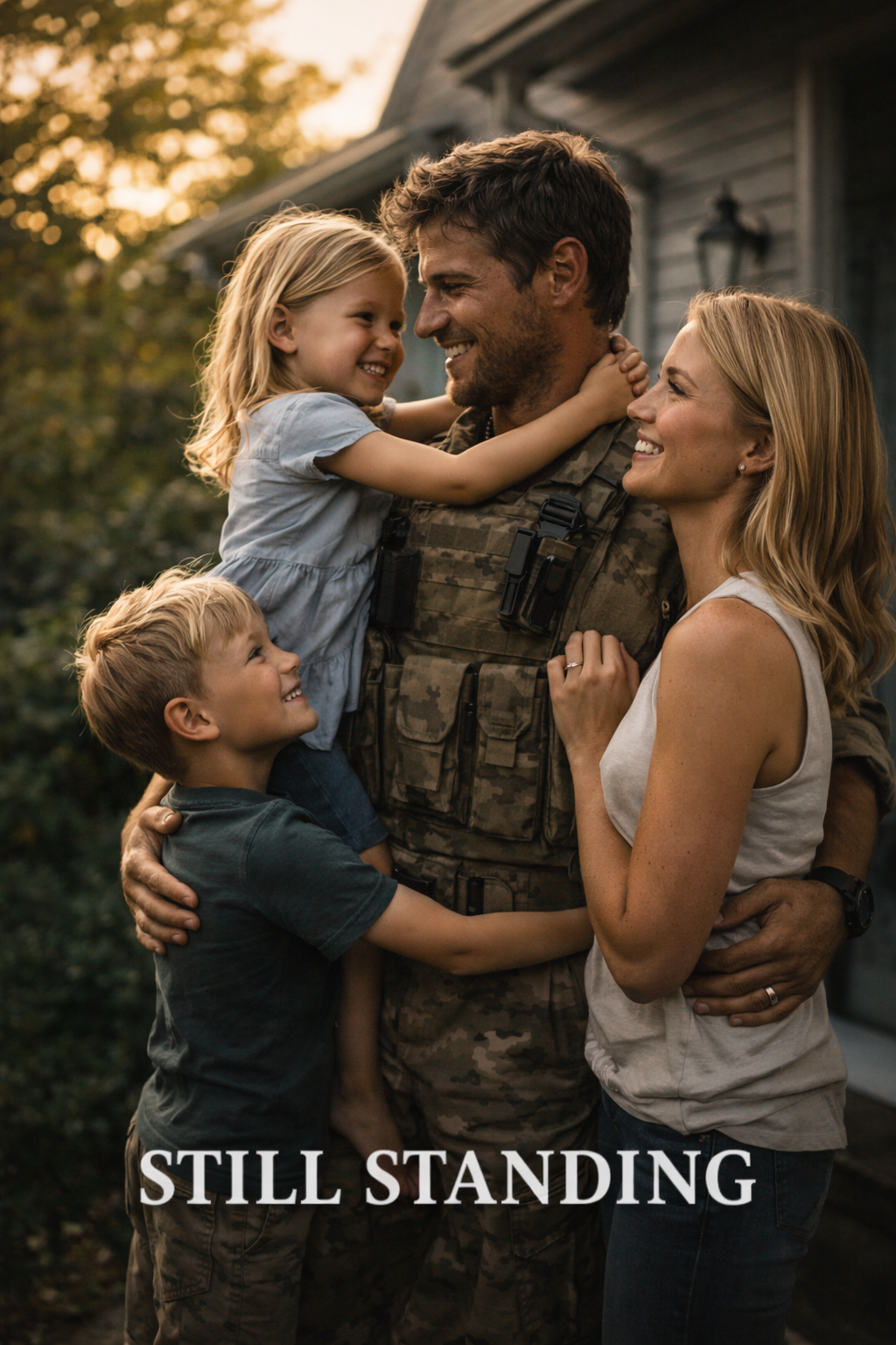 (Minimal emotional piano ballad, Soft felt piano leading, restrained strings, distant ambient pads, very subtle choir swells, Slow tempo, Male vocal intimate, close-mic, weary, slightly cracked, emotionally honest, Quiet devastation, realistic veteran aftermath, )