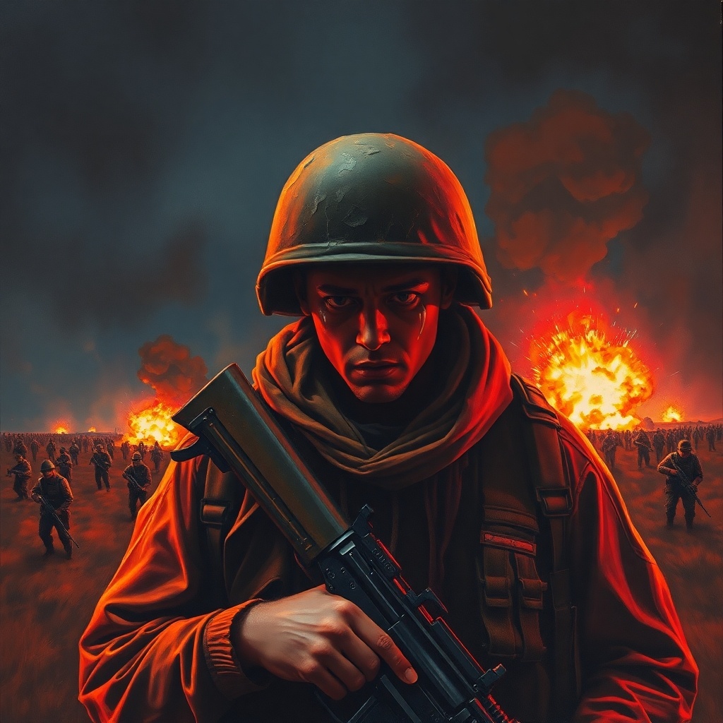 An epic power metal ballad forged in the fire of internal war, this track blends emotional storytelling with battlefield grandeur, It opens with somber guitar arpeggios and distant war horns, evoking the silence before a mental storm, Tension builds with snare-driven rhythms and symphonic brass, then erupts into soaring melodic guitars and commanding vocals layered with ghostly whispers and choir harmonies, The lyrics echo the silent agony of panic and fear, as if sung by a soldier fighting unseen enemies within, Midway, an emotional guitar solo and orchestral swell amplify the inner collapse, The final chorus explodes in triumphant defiance—heroic, raw, and painfully human, This song walks the line between despair and hope, framed in the armor of symphonic metal and driven by the spirit of survival