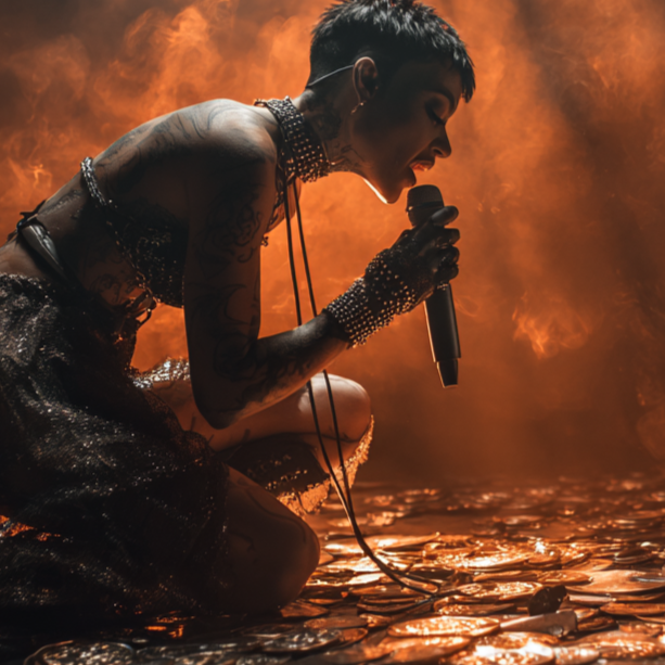 Female vocalist with high-energy delivery, part rap, part melodic shout, Gritty garage-rock production — distorted bass, live drums, crunchy guitars, minimal polish, Underground vibe with gospel-punk attitude, Anthemic, raw, rebellious, Title: “Riot Gospel, ”
