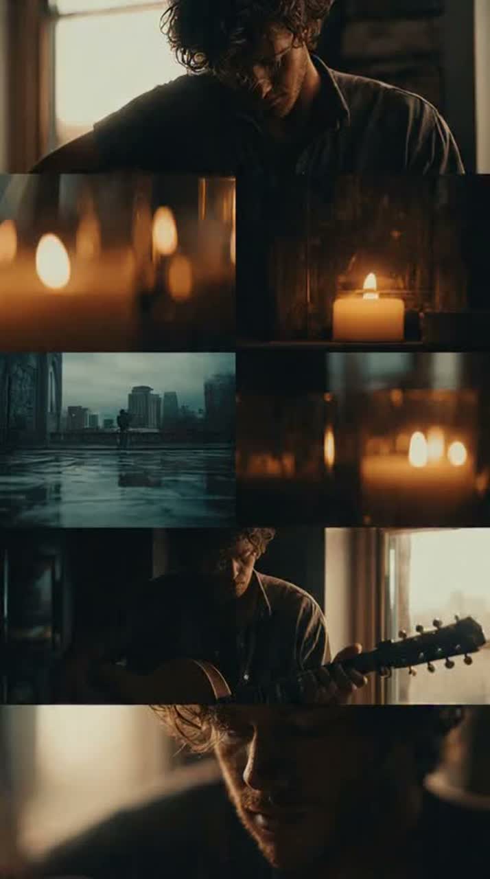 Emotional acoustic pop rock ballad, 80-90 BPM, multiple layered acoustic guitars with warm fingerpicking arpeggios, soft ambient electric guitar textures, minimal drums gradually building, deep expressive male vocal with slight rasp, intimate and vulnerable tone, cinematic atmosphere, slow emotional progression, heartfelt storytelling, clean production with natural reverb, dynamic build from soft verses to powerful emotional chorus, rich harmonic layers, reflective and poetic mood, strong emotional impact