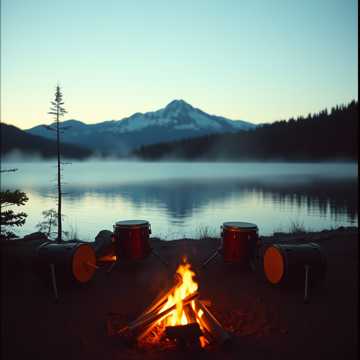 gene: conga set drums, music to listen to by the campfire on a camping holiday, by the lake mountain’s, emo, atmospheric