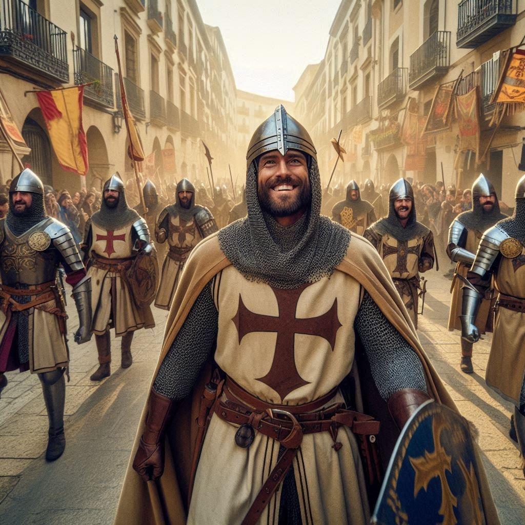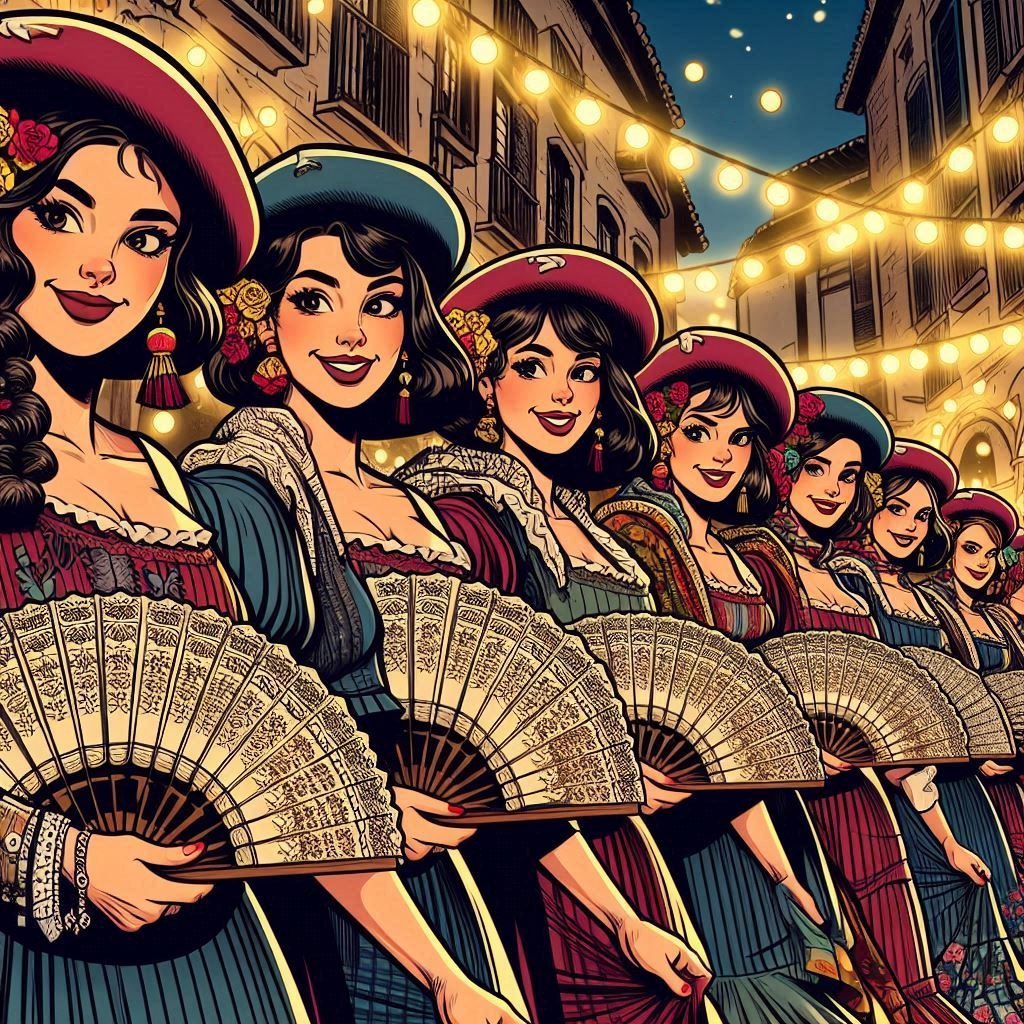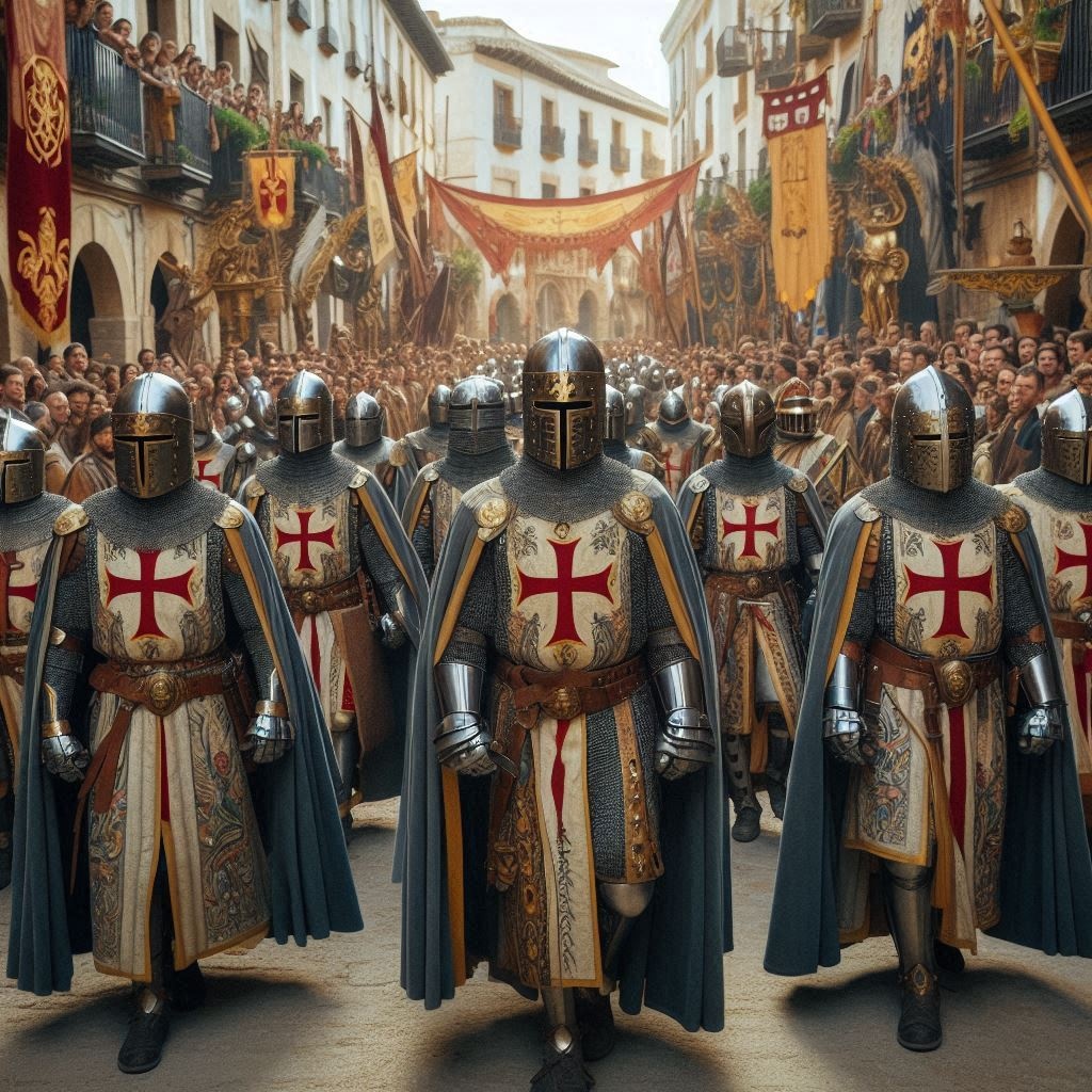 Instrumental marching band track inspired by traditional Spanish “Moros y Cristianos” festival music, in the style of a festive pasodoble, Use orchestration typical of a Spanish brass band including trumpets, trombones, French horns, euphoniums, tubas, clarinets, flutes, snare drums, bass drum, and cymbals, The rhythm should be energetic and uplifting, suitable for a street parade, with strong percussive marching elements, bold melodic phrases in the brass, and lively countermelodies in the woodwinds, The tempo should be moderate to brisk, evoking celebration and tradition, No vocals, purely instrumental, trumpets, cymbals, drums, flute, bass drums, brass, ritmic, melódic