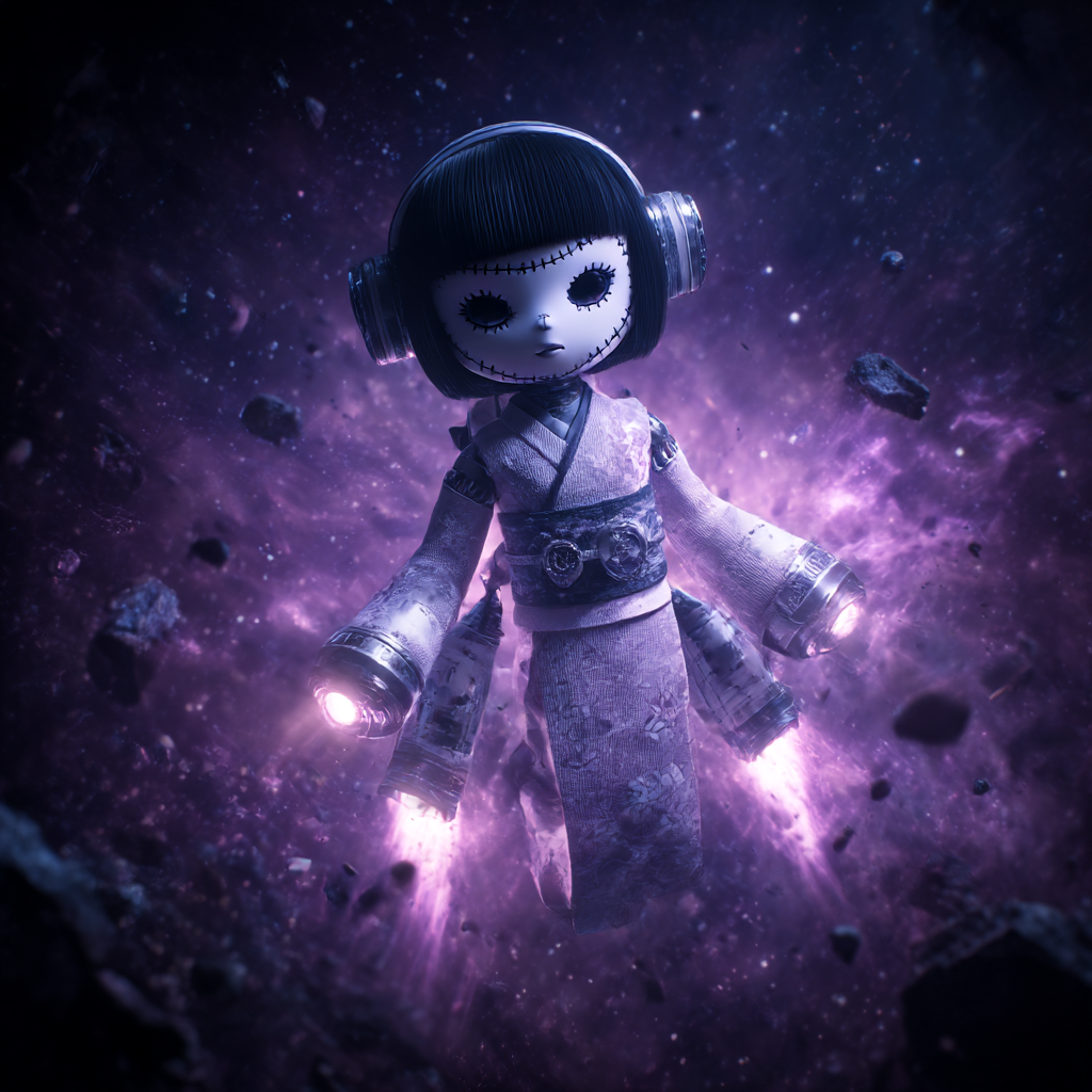 Futuristic emotional SF rock with fast tempo and cinematic atmosphere, Powerful electric guitars blend with synthetic arpeggios and ambient pads, Vocals shift from bright determination to emotional farewell, capturing the tragic yet heroic essence of a lone AI girl cleaning space debris