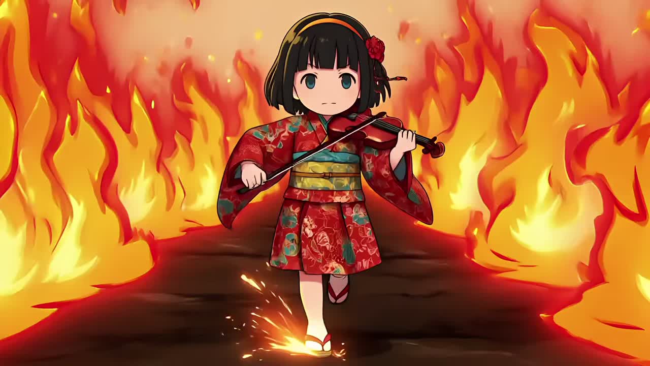 Ultra fast Japanese dark rock, aggressive violin lead, ritual kagura energy, heavy drums, BPM high, explosive build, no intro delay, nonstop running song, fiery and intense