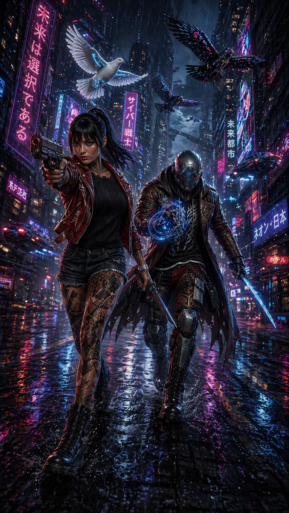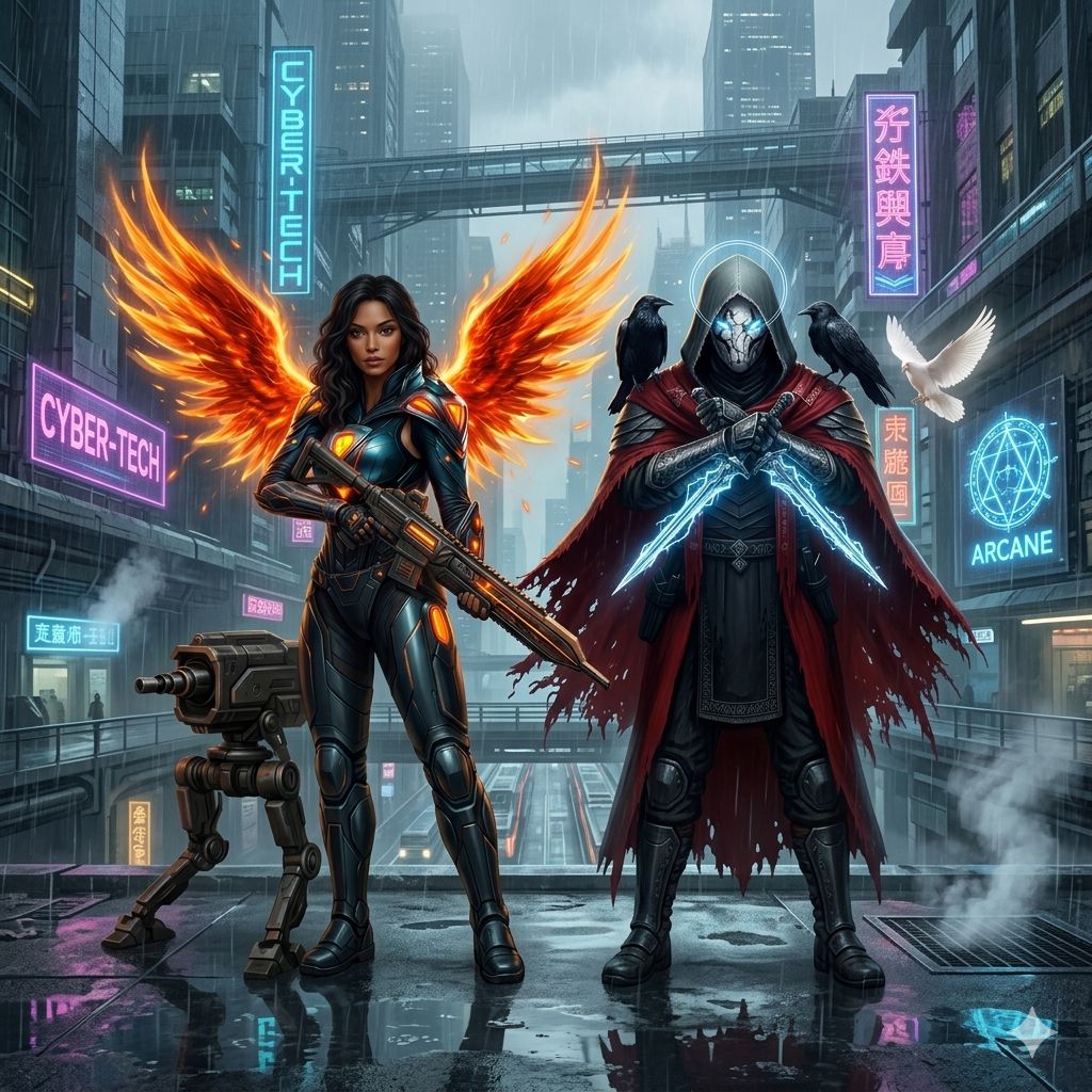 Male and female duet, gritty post-grunge male vocals, ethereal aggressive female vocals, dark cinematic anthemic ballad, heavy synth bass, massive sub-bass, rhythmic rapping singing, free-flow vocals, harmonized edgy vocals, reverb synth violin, synth waves acoustic guitar, electric cello, muted french horn, electric conga, synth beat pad, building to intense climax, driving industrial beat, 120 BPM, powerful, spoken word, kick drums, piano