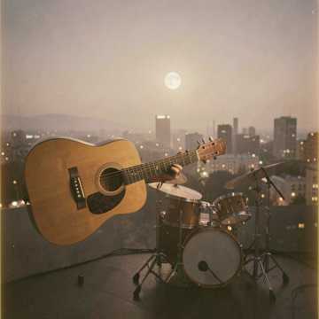 [Instruments: sustain slide electric guitar, analog Moog synths, Hammond B3 organ, arpeggiated acoustic guitar, melodic walking bass, full dynamic range acoustic drum kit, NO harsh distortion/modern digital gear]