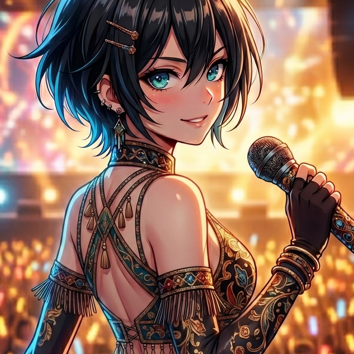 Bright gamelan metallophone groove, syncopated kendang drum patterns, lush J-Pop synthesizer chords, tight electric guitar riffs, melodic and punchy synth bass, Contrast between traditional dangdut koplo rhythmic sections and polished, anthemic J-Pop choruses, Vocal style: Solo female, sinden, piercing high tessitura, bright nasal resonance, heavy melisma with microtonal trills and gregel ornamentation, ethereal head voice, soaring melodies, layered harmonies, call-and-response with adlibs layered harmonies, 138 BPM, dense and vibrant production, crisp modern pop mix with traditional textures, ‑edm, ‑rock, ‑orchestra