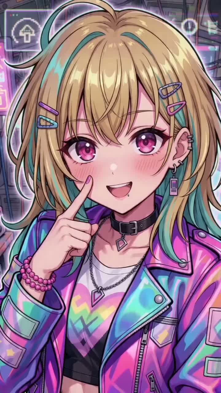 Genre: Fast paced Electro-eurobeat, Denpa-inspired | Mood: Hyperactive, playful, mischievous, slightly chaotic but polished | Instrument: Bright, bouncy synth leads, tight punchy kick-snare patterns, elastic basslines, rhythmic chord stabs, layered clap grooves | Vocal: Female high-pitched nasal idol tone with rapid syllabic delivery, talk-sing switching, pitch slides, playful off-key bends, exaggerated vibrato, teasing giggles, expressive and unstable character | FX: Clean build-ups with snare rolls, vocal chants, harmonic layering, energetic drops, Clean and Polished mixing, Studio Recorded production, ‑glitch fx