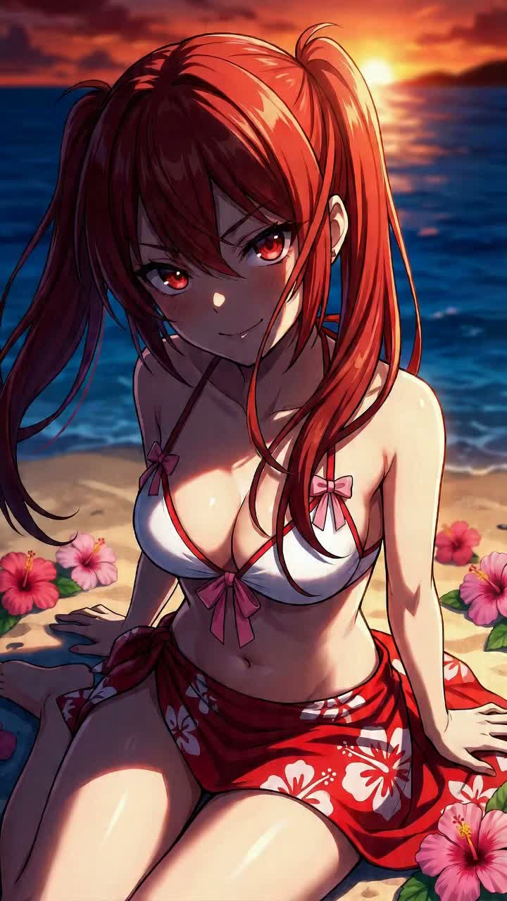 A surreal fusion of doom metal and Caribbean calypso, driven by extremely slow, down-tuned electric guitars layered with bright, melodic steel pan lines and rhythmic ukulele strums, Massive crash cymbals punctuate the dragging tempo while contrasting sunny tropical textures, Vocals feature a dark-cute, yandere-style female voice with vocaloid processing, shifting between eerie melodic lines and rhythmic rap-talk delivery, The production is clean and polished, balancing heavy low-end weight with crisp, colorful high-frequency percussion, creating a confusingly uplifting yet oppressive atmosphere