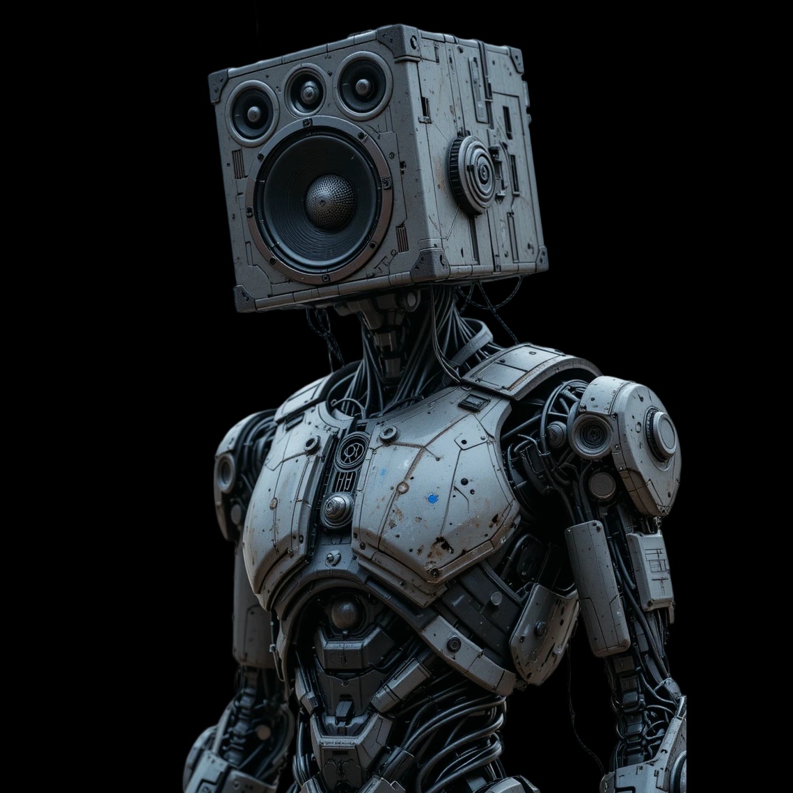 Minimal techno, glitchy analog textures, robotic poetry, dark ambient rhythm, cybernetic pulse