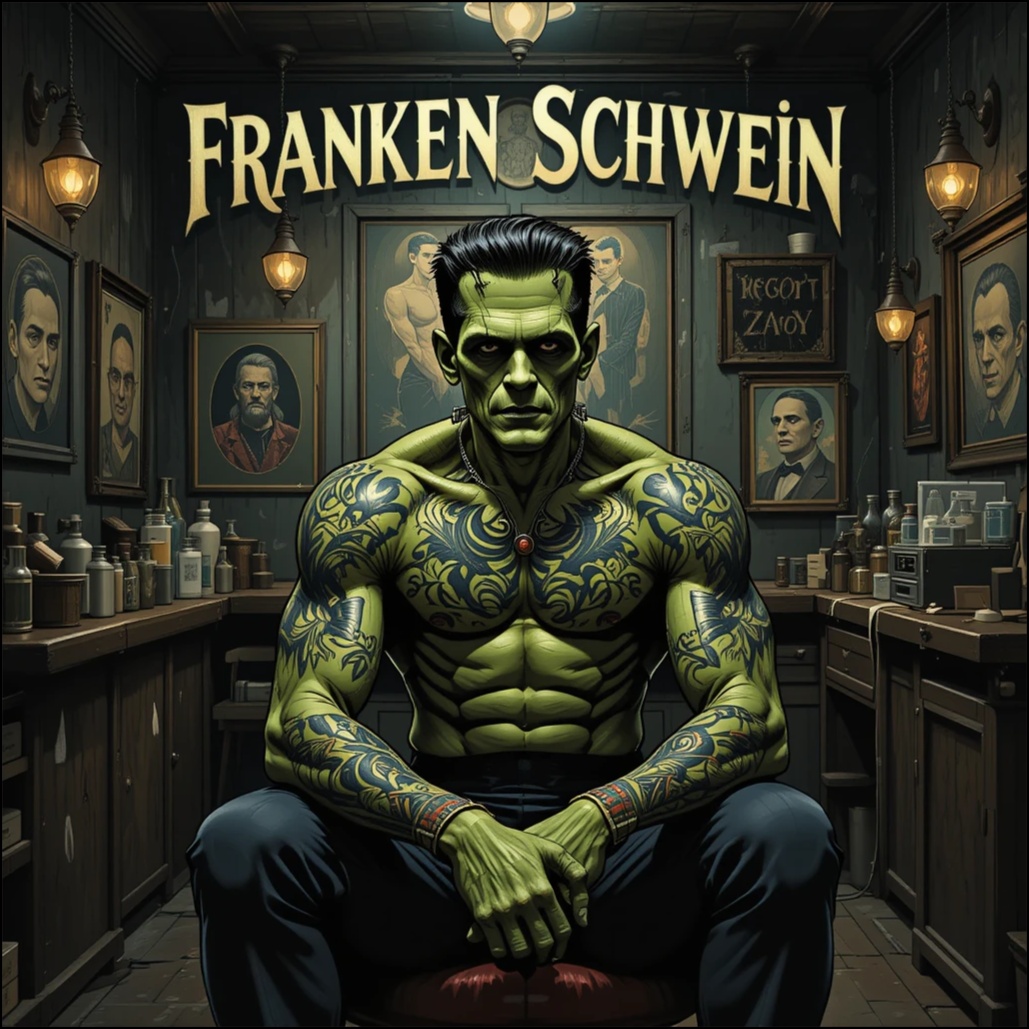 Horror techno, BPM ~104, glitch FX, dry sub-grooves, whispered German vocals, filtered sound shifts, hypnotic reduction, deconstructed consciousness