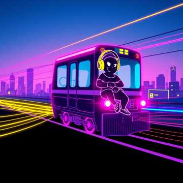 train, tr-909, adventurous, energetic rhythms, dj VOICE, funk, swelling, electric bass, detroit techno