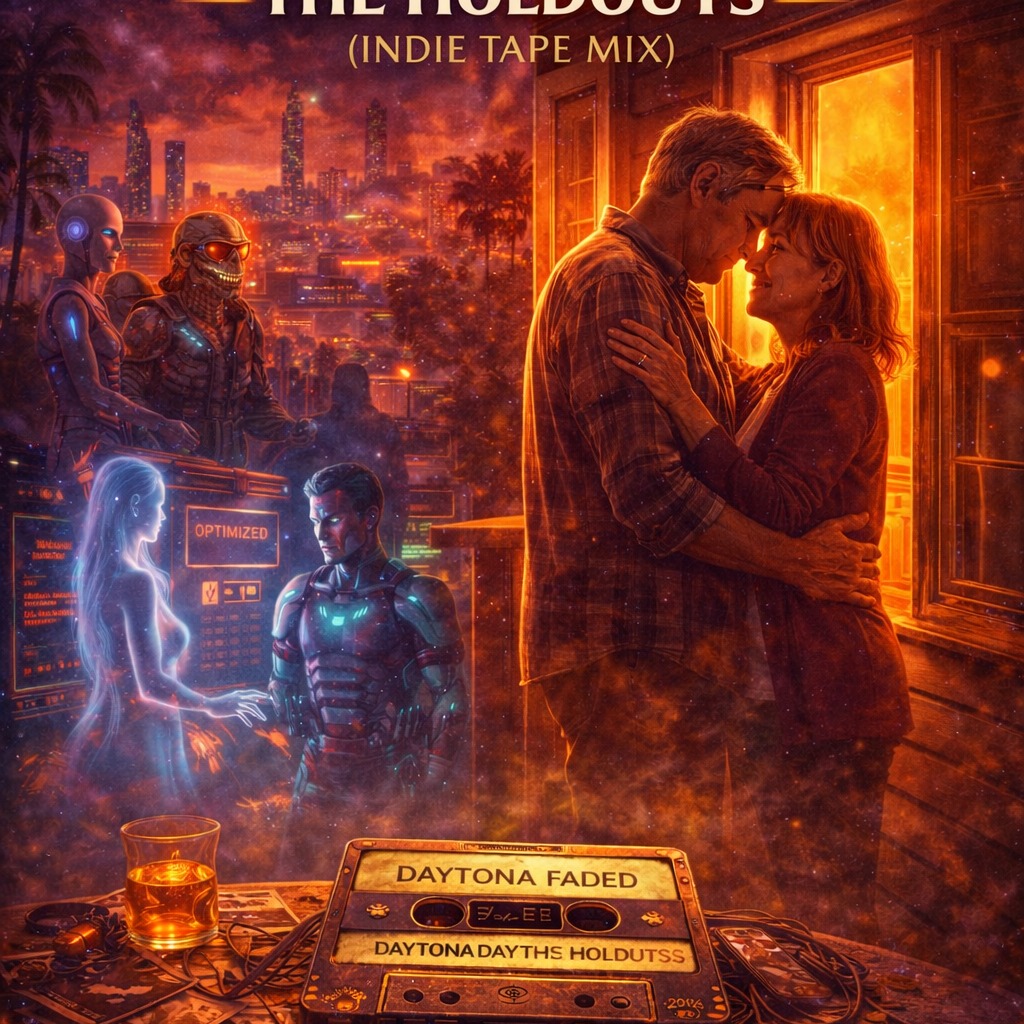 Lo-fi indie-pop-rock demo, male vocals, A raw Portastudio rehearsal recording with a dreamy, downtempo atmosphere, Features a vintage drum machine with a loose, "broken" human groove and natural room mic bleed, Warm, overdriven bass amp tones meet jangly electric guitars and cinematic shoegaze textures, Intimate, understated vocals recorded slightly off-axis with analog tape saturation, Minimal editing, preserving flawed takes, amplifier feedback, and subtle phaser-drenched ambience, Nostalgic, honest, and human