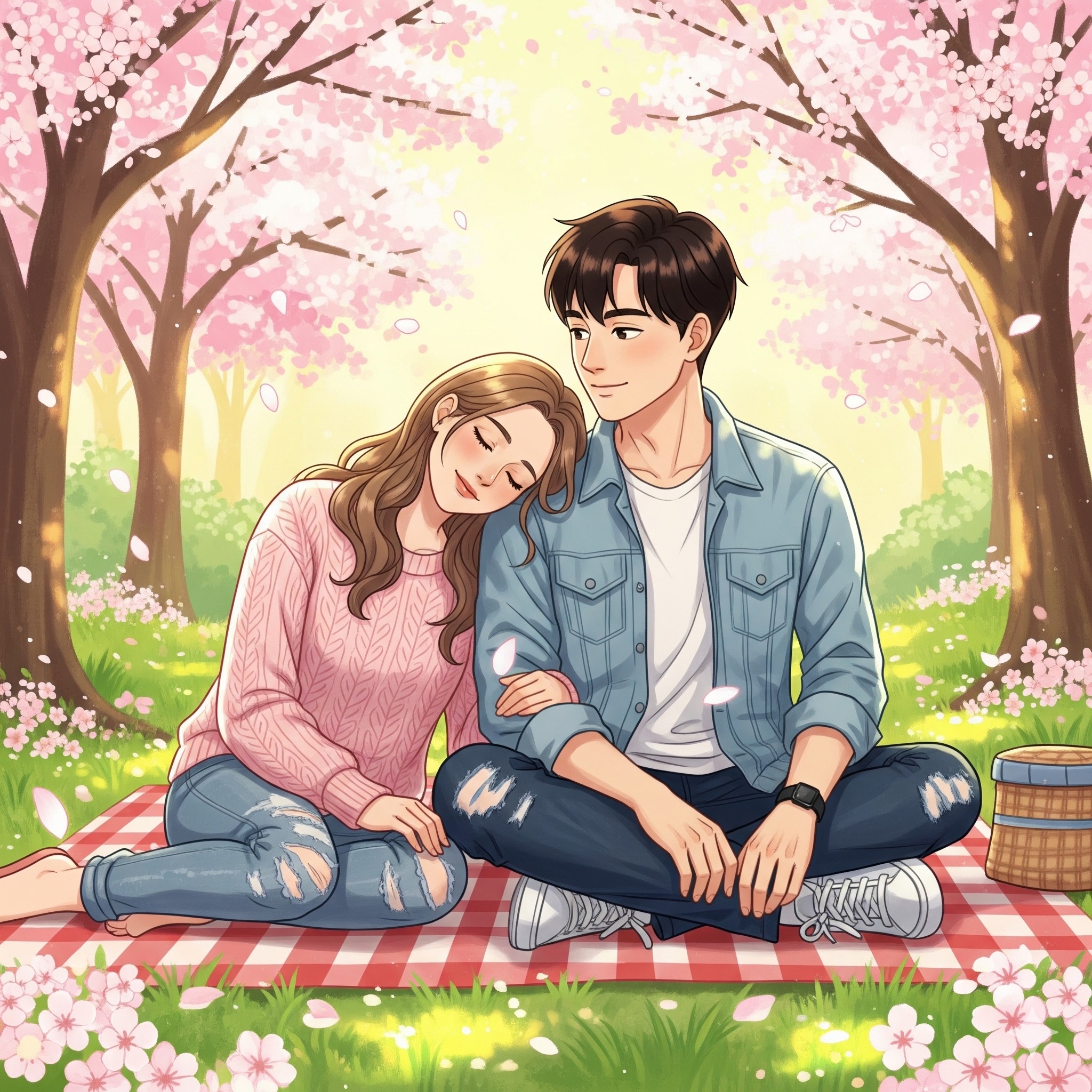 Prompt: A refreshing Indie Folk-Pop duet with a focus on rhythmic acoustic guitar and playful vocal interplay, The arrangement is minimal but groovy, featuring a warm upright bass and percussive finger snaps, The male and female vocals exchange lines like a conversation, building a bright and breezy atmosphere that captures the essence of a sunny spring afternoon, Clear, crisp production with a focus on lyrical delivery and natural vocal textures