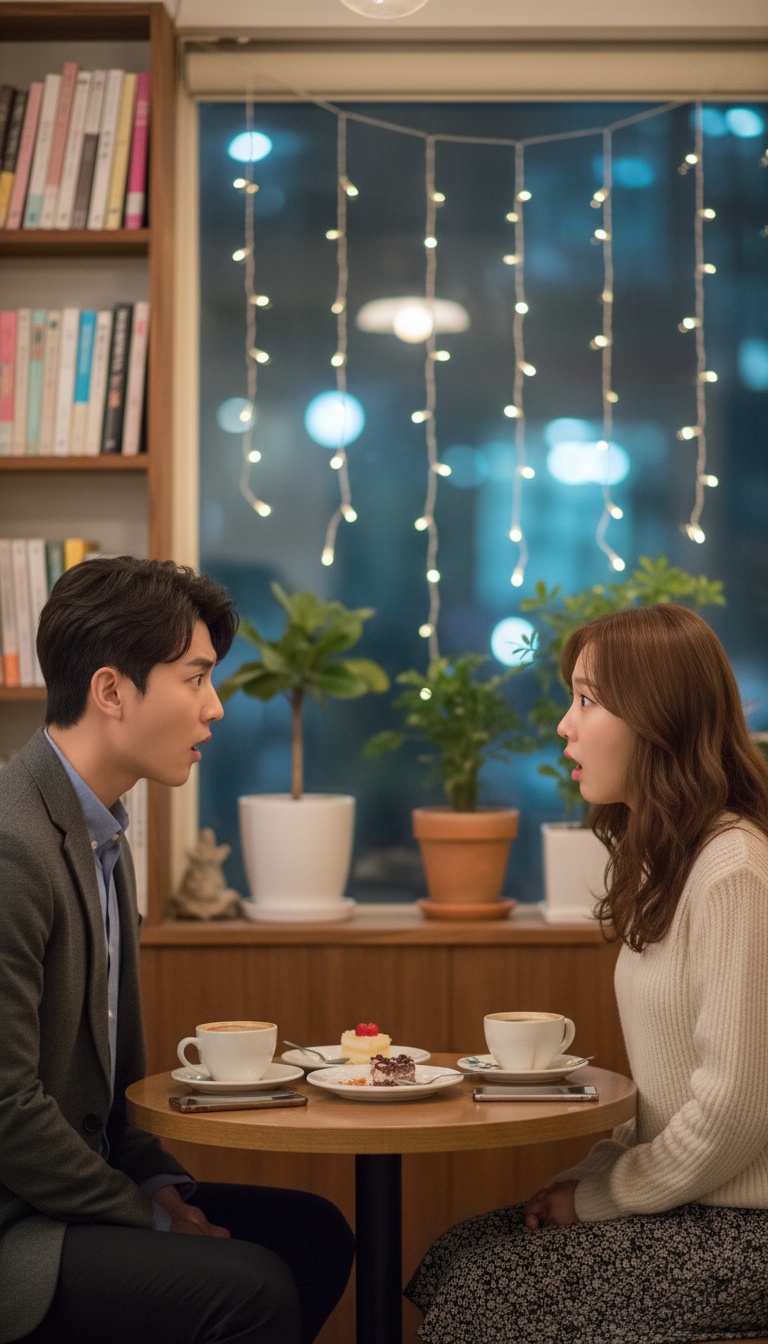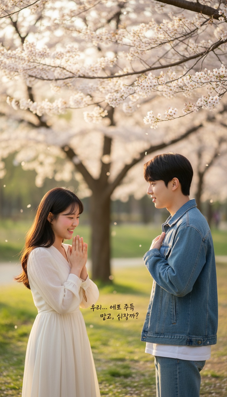 Playful comedic acoustic K-pop instrumental inspired by an awkward blind-date situation, Male-vocals, Brisk ~120 BPM with energetic fingerstyle acoustic guitar featuring fast arpeggios