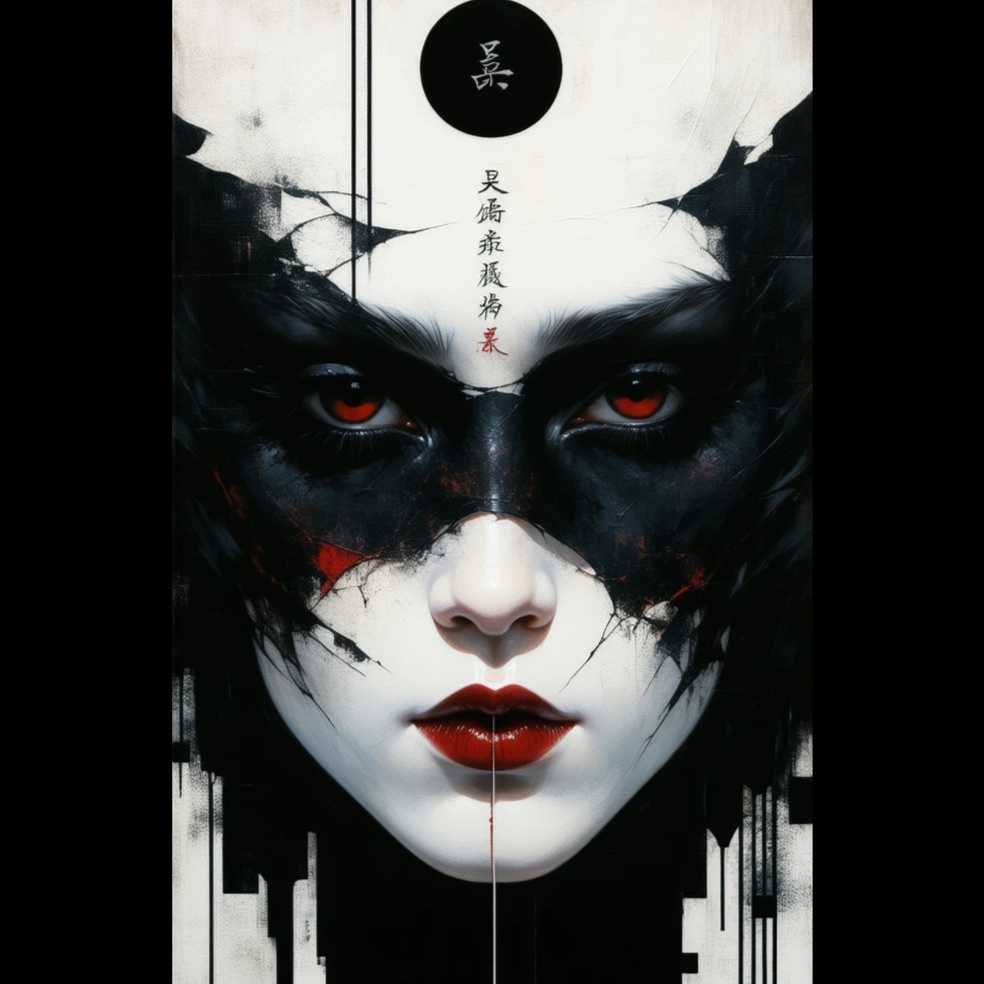 Turntablism meets cinematic darkwave, Scratch loops, haunting strings, glitch textures, deep bass, Abstract beats intertwine with orchestral swells and eerie atmospheres, Hypnotic and immersive