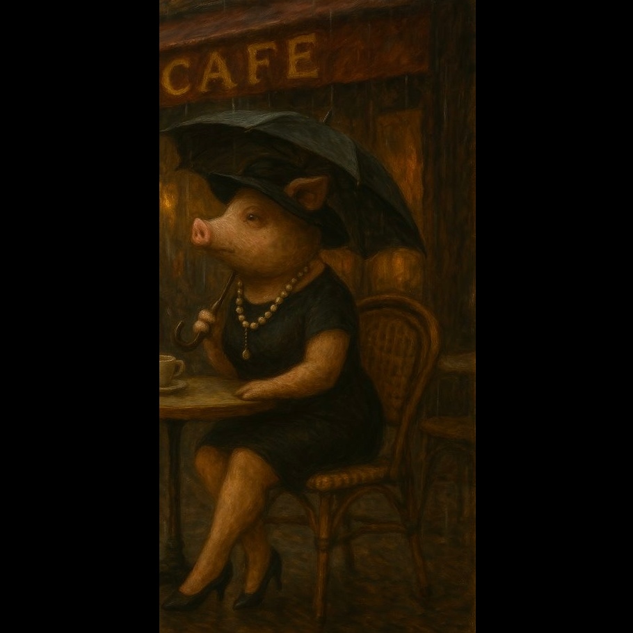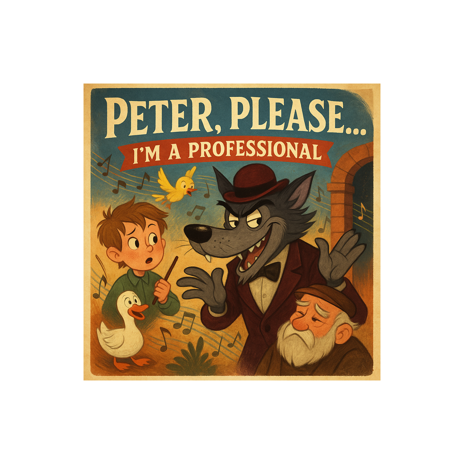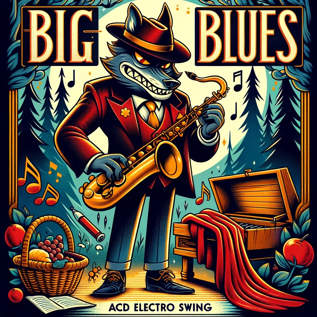 Begins with a classical orchestral overture à la Prokofiev, each character introduced by solo motifs: clarinet, oboe, bassoon, strings, French horns, As the music advances, the orchestra fuses into Acid Jazz—walking double bass, swinging drums, jazzy woodwinds, Electro Swing glitches, syncopated Comedy Swing brass stabs, and wild tempo shifts accentuate slapstick scenes, Orchestral themes return as sampled, warped motifs, The narrator’s cabaret vocals lurch in rhythm, interjecting spoken asides with dramatic pitch and comedic rubato, creating playful tension atop the hybrid orchestral-jazz-swing arrangement