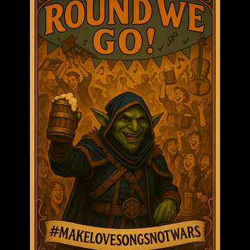 Danceable folk-punk jig, Bardcore, Tavern, Sub Bass Thump, Synth Pads, Hi-Hats, Celtic folk, Arpeggios, Pub singalong, Upbeat folk, Joyous, Warm, Romantic, Festive, Bouncy rhythm, Fiddle lead, Hypnotic layers, Percussive stomp, Vocal chops, Hand claps, Layered crowd, Tavern ambience