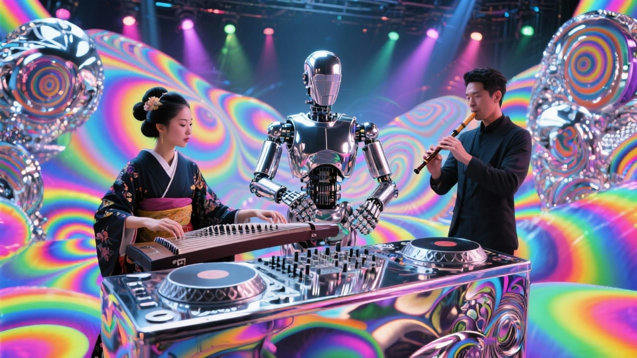 A solo percussion piece featuring a handpan, The handpan plays a continuous, flowing melody with a moderate tempo, The sound is resonant and ethereal, with clear, sustained notes, The performance emphasizes the instrument's natural harmonics and percussive qualities, creating a meditative and ambient atmosphere, There ar