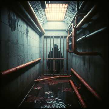 Industrial Metal, Aggrotech, Dark Electro, heavy distorted bass, metallic percussion, aggressive guttural male vocals, claustrophobic, oppressive, squelching sounds, dripping water, echoing, tense, frantic, sense of being trapped, menacing synth pads, distorted screams, hydraulic sounds