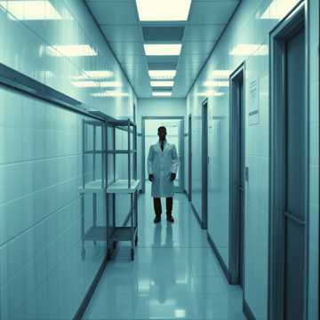 Industrial Metal, Aggrotech, Dark Electro, heavy distorted bass, metallic percussion, aggressive gritty male vocals, sterile, cold, clinical atmosphere, melancholic synth pads, rhythmic beeping, bubbling liquid sounds, surgical clangs, a sense of fading hope, experimental, scientific horror, chilling and methodical