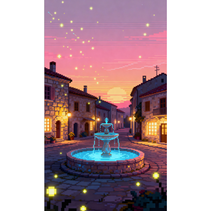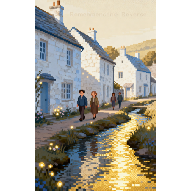8-bit chiptune, nostalgic town theme, square lead, triangle bass, soft pulse arpeggio, gentle noise snare, bittersweet tone, calm tempo, lo-fi reverb, warm memory, BPM 92, key C major
