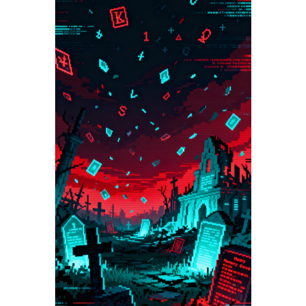 8-bit minimal chiptune, dark ambient tone, low triangle drone, pulse wave echo, detuned harmony, slow tempo, eerie calm, sacred melancholy, glitch texture, BPM 80, key F# minor