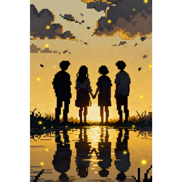 8-bit emotional chiptune, slow ballad, warm pulse harmony, triangle bass heartbeat, gentle white noise rhythm, nostalgic yet hopeful, motif reprise, human warmth, quiet beauty, BPM 78, key E major