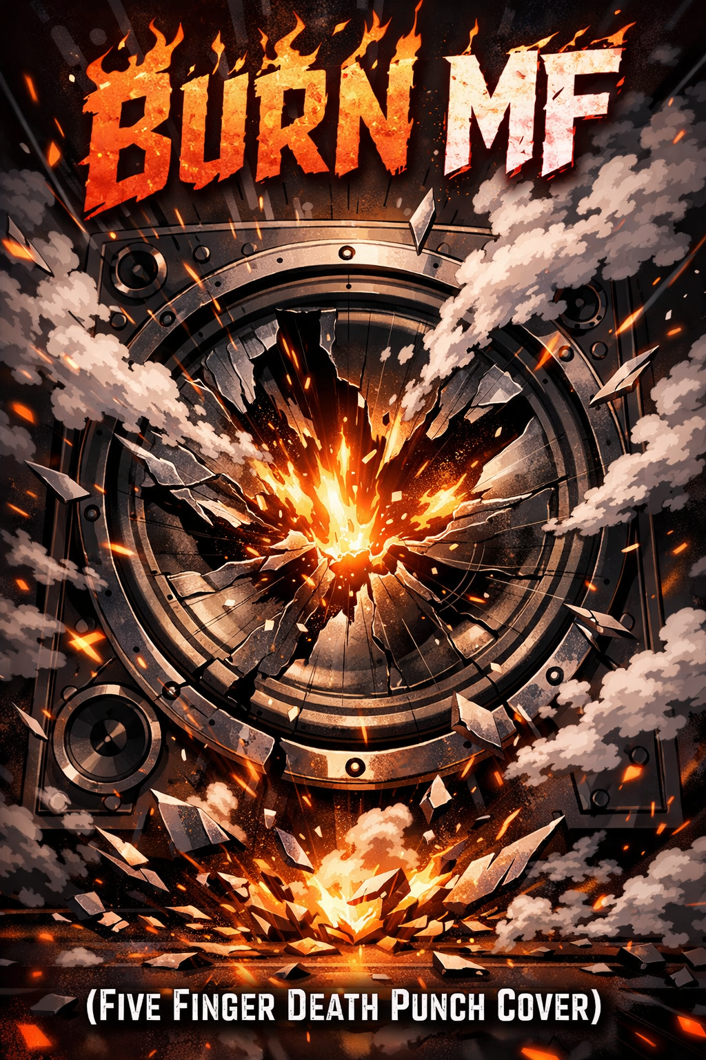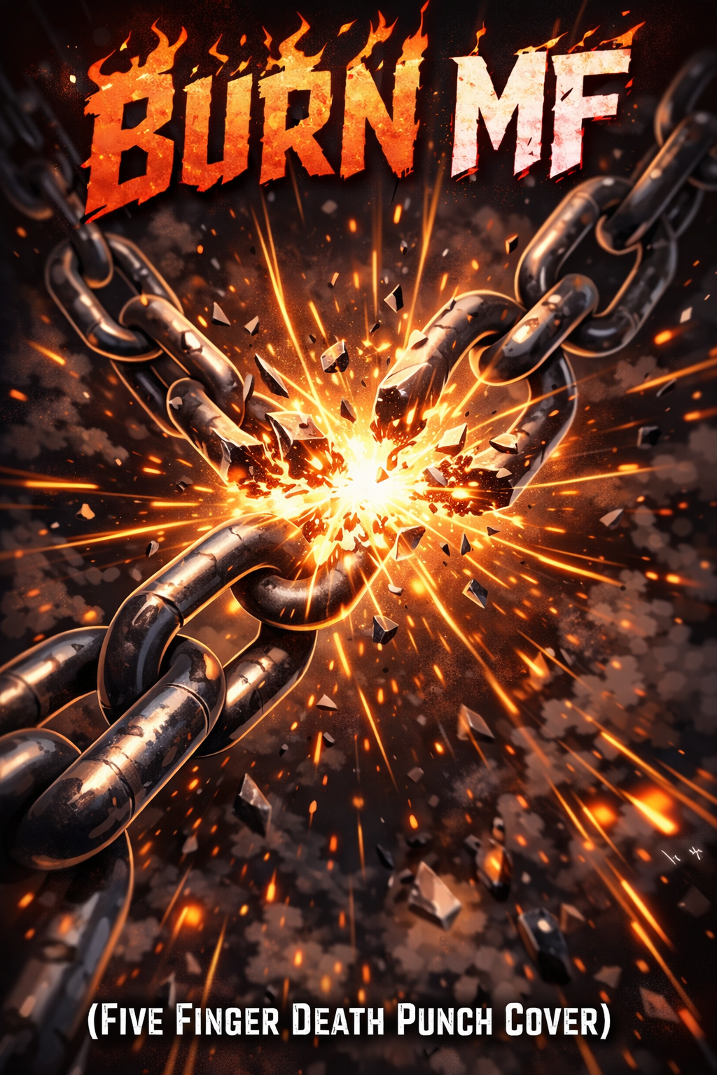 Kicking off with abrupt jagged guitar riffs drenched in distortion and feedback, this furious underground punk rock track blends metal and glam metal energy, Frantic screamed vocals clash with monotone spoken parts, both delivered in clipped, repetitive phrases, Chaotic drum patterns fuse metalcore aggression with electronic layers, keeping intensity high, The rhythm section pounds relentless excitement while bursts of noise and raw anger erupt throughout, creating a dense, electrifying sonic assault
