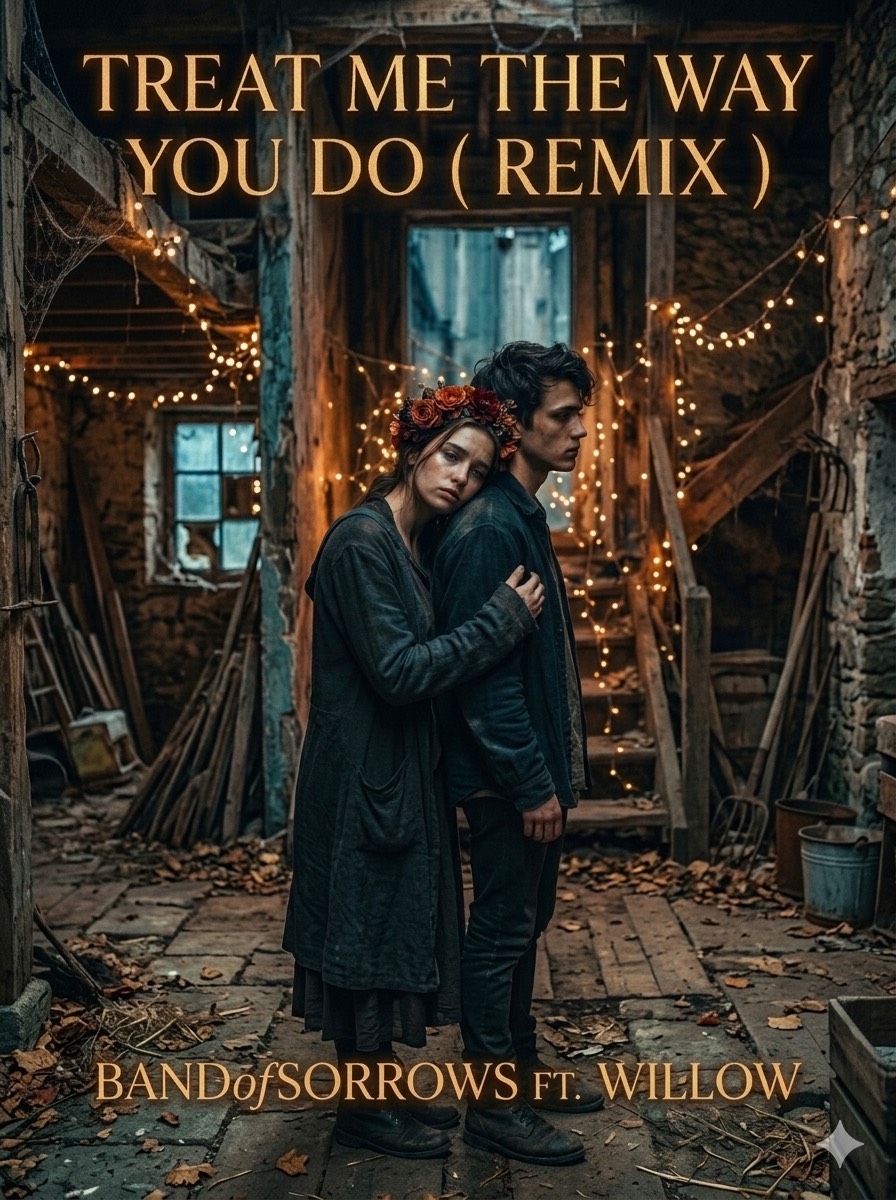 Gruff yet eloquent male vocals, cinematic dark grunge, ethereal goth emo, haunting piano, reverb steel guitar, acoustic guitar duo, melodic cello and violin, subtle cathedral organ, sorrowful mid-tempo percussion, raw emotional vocals, vulnerable tension, atmosphere of despair, opposing synth bass, reverbed electric Congo drum 165BPM, reverb electric guitar, emo, powerful, atmospheric polished studio production, hit radio-ready quality, hip hop alternative rock fusion, deep 808s, crisp snares, minimal hi-hats, ambient synth layers, dynamic male and female vocal layering, cinematic emotional builds, dramatic crescendos, immersive spatial effects, haunting melodic hooks, layered harmonies for depth, introspective yet powerful energy, dark and beautiful emotional textures, rich atmospheric soundscape, remix-ready, emotionally gripping, polished yet raw, modern alt-rock meets hip hop, soaring and vulnerable vocals, immersive and resonant