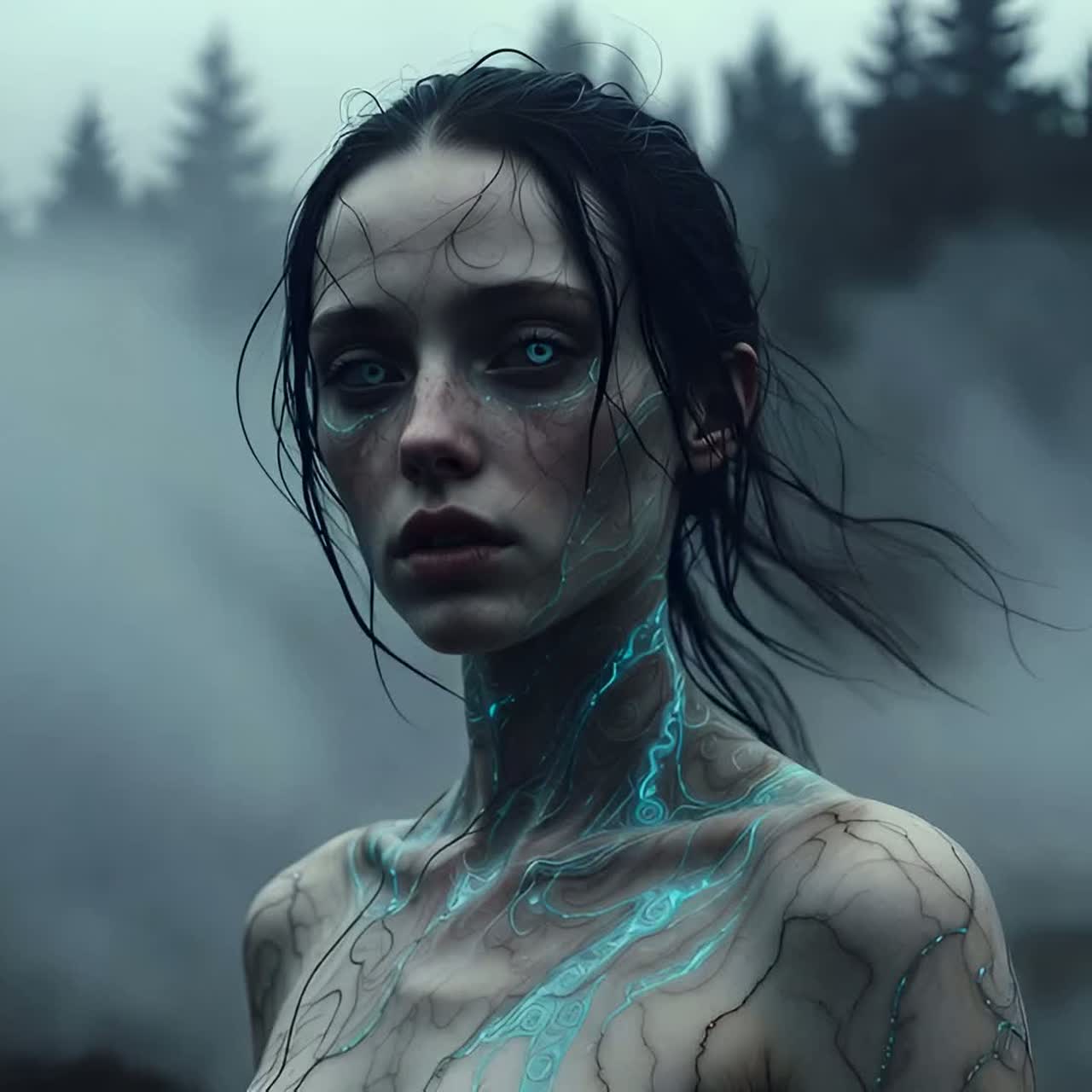 A brooding dark pop anthem infused with industrial electronic elements and a cyberpunk vibe, featuring haunting female vocals that build from whispers to powerful belts, Instrumentation includes deep pulsating synth bass, glitchy electronic percussion with echoing snares and metallic hits, distorted electric guitars for gritty riffs, and atmospheric synth pads creating a dystopian soundscape, The tempo is mid-range at around 130 BPM, in a minor key to evoke mystery, empowerment, and digital-age rebellion, catchy beat, powerful guitar riffs, retro synthwave