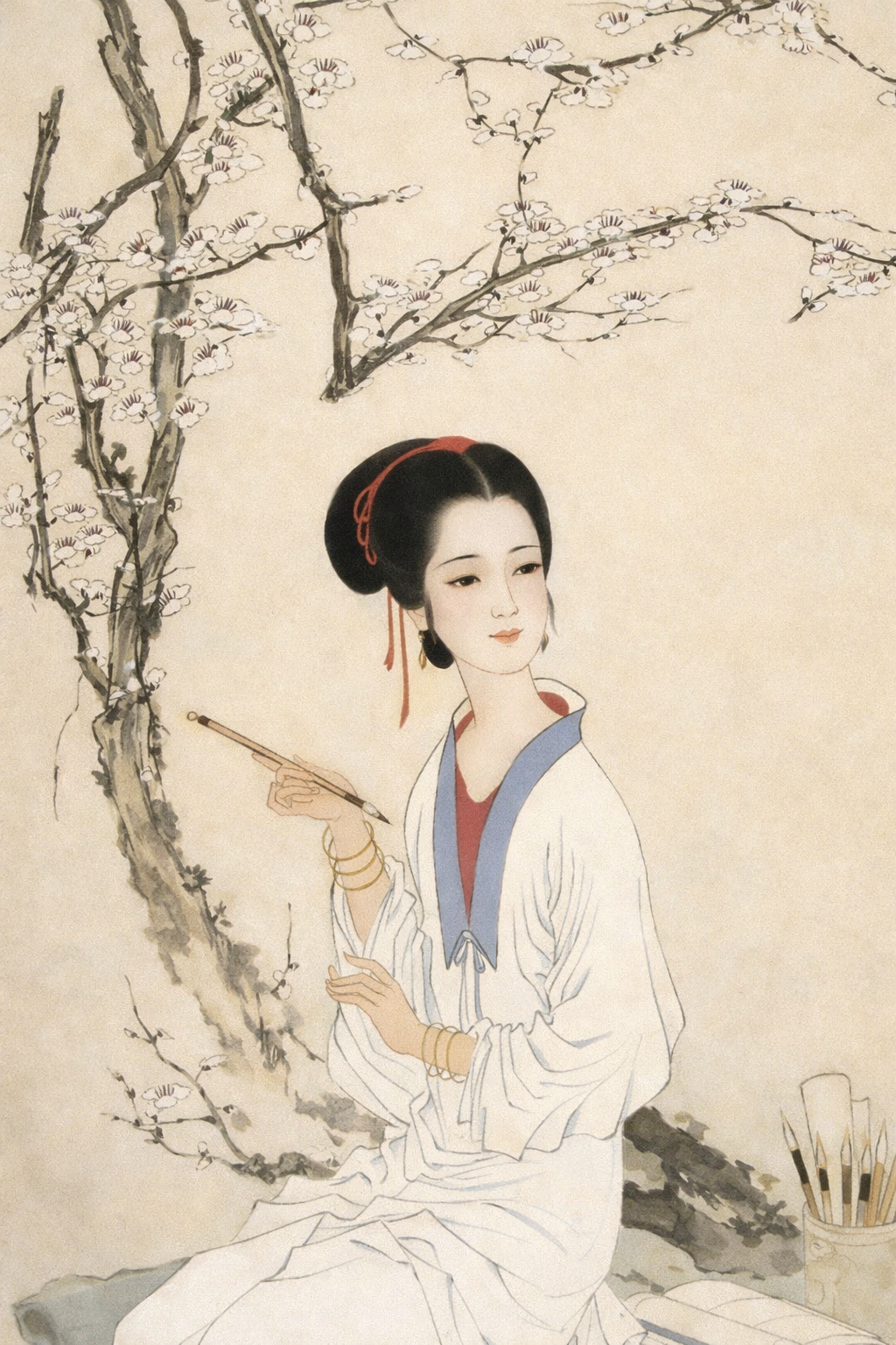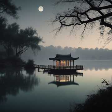 A slow-tempo Chinese ballad in a minor key opens with a delicate guqin motif, layered by sparse guzheng phrases and breathy, emotional female vocals, Xiao flute drifts over a reverb-laden, cinematic ambient bed, Minimal temple drum percussion softly marks key moments, keeping the atmosphere poetic and minimal