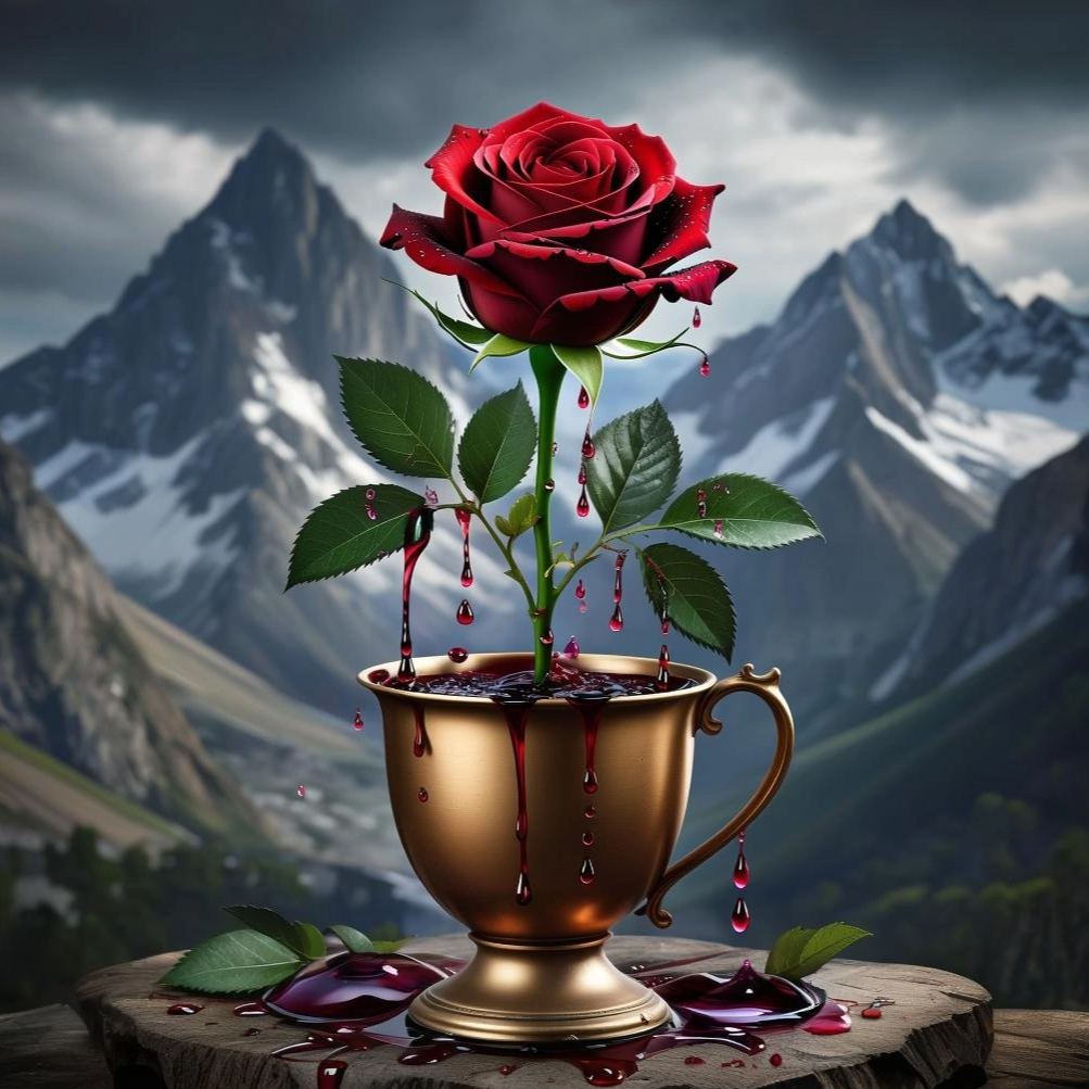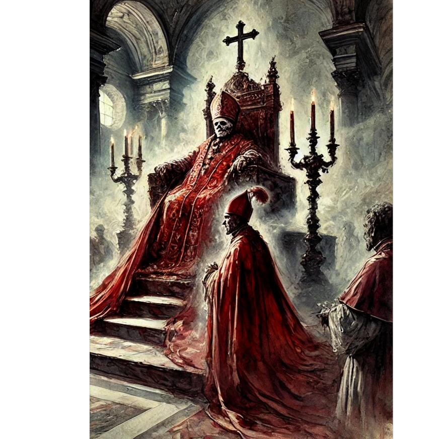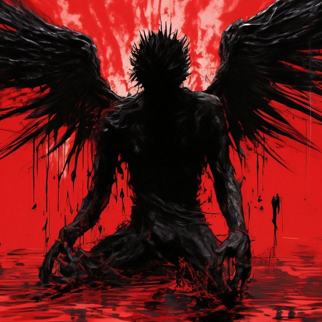 Style: Industrial Rock × Gothic Metal × Darkwave, Voices: male deep raspy vocals, haunting whisper layers, distorted screams in chorus, Mood: blasphemous, seductive, decayed glamour, theatrical darkness, Instrumentation: heavy detuned guitars, industrial drum loops, distorted bass synths, eerie choir pads, metallic percussions, haunting reverb vocals, FX: glitch noise, reversed whispers, metallic echo, vinyl static, Ending: slow fade-out with mechanical breathing and distorted laughter