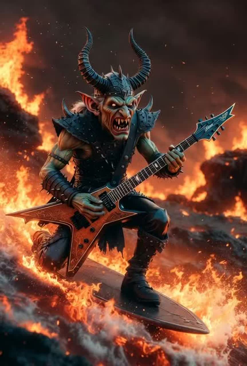 Melody built entirely from pinch harmonics and screeches, performed on distorted electric guitar, The tone is sharp, metallic, and vocal-like, with squealing bends, glissandi, and harmonic growls forming the main motif, Layered feedback swells and high-register shrieks create an eerie, otherworldly atmosphere, Rhythm is jagged and unpredictable, with sudden bursts of harmonic squeals cutting through silence, Production emphasizes raw intensity: close-mic’d amp saturation, heavy reverb tails, and spectral delay to stretch the screeches into cosmic textures, The overall mood is chaotic yet hypnotic, like a ritualistic incantation of noise and light, Basslines: