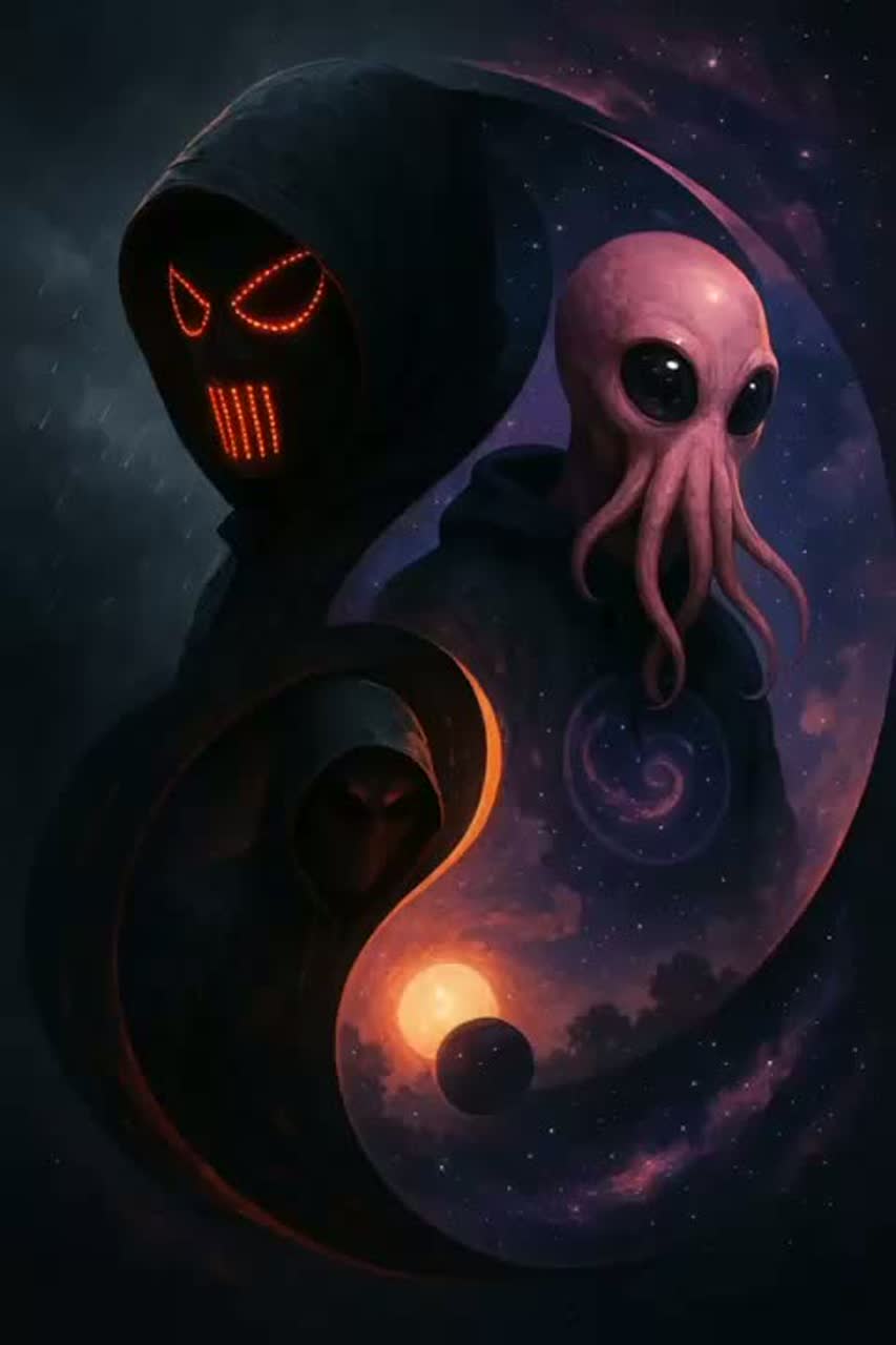 Opening with lush, magical piano over ethereal, heavenly synth pads, a celestial choir drifts in, The energy flips with diabolical dubstep drops—warped wubs and rubbery womps twist alongside glitched arpeggios and analog synths, Foreboding trumpets punch through, accented by frightening, modulated frequencies for an ecstatic, divine trance climax