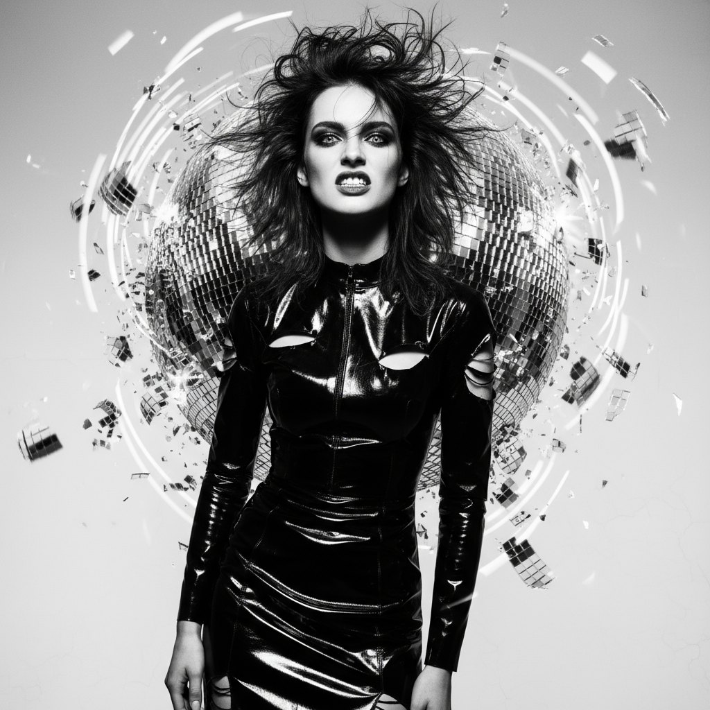 Sparse, sassy, cheeky, minimal, shimmering indie house with a classic Detroit techno vibe, 124 BPM in Scale F Double Harmonic Major, The track is built on a hypnotic "boom-tick" groove and a lush, immersive soundscape of evolving unstable chord-samples and LFO-modulated Sequential Pro 3 Bassline, The androgynous vocal performance is a captivating and unusual fusion of a shy, intimate, quiet delivery and a raw, understated punk attitude, delivered in a cool, androgynous voice with slightly off-key phrasing and without confidence, The overall mood is a unique blend of beautiful, atmospheric sadness and a tense, nervous, and restrained energy for the open minded Fashionistas for crowded clubs at 3am with late-night texture packed with tension, The track is blending organic acoustics and dense electronics, bizarre melodies woven through every phase