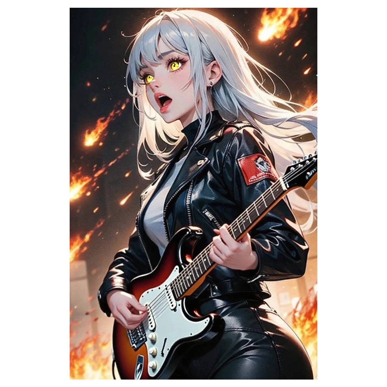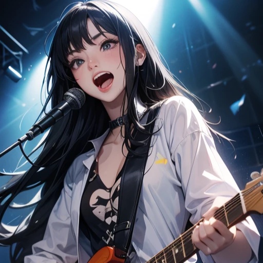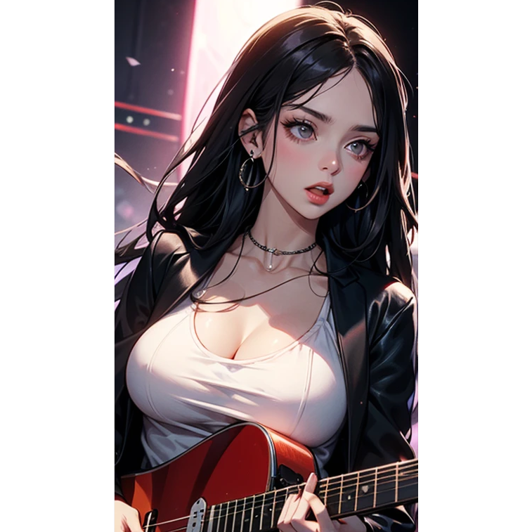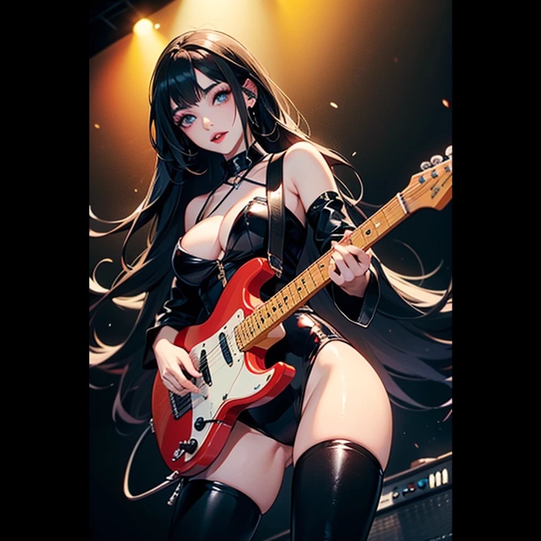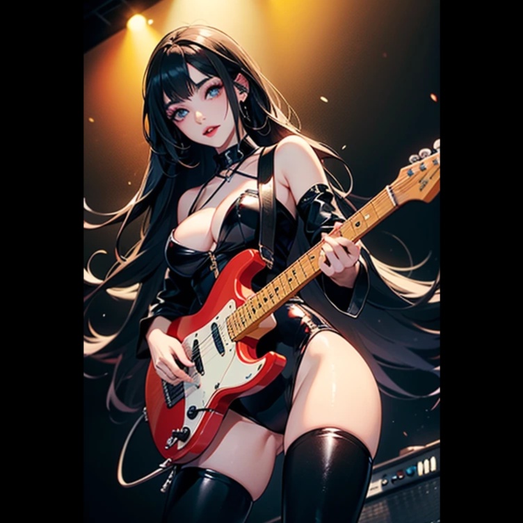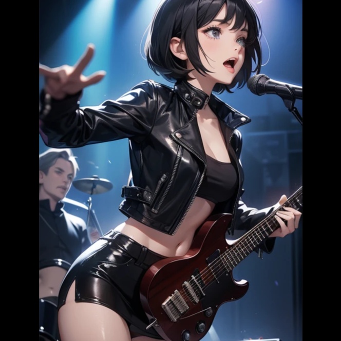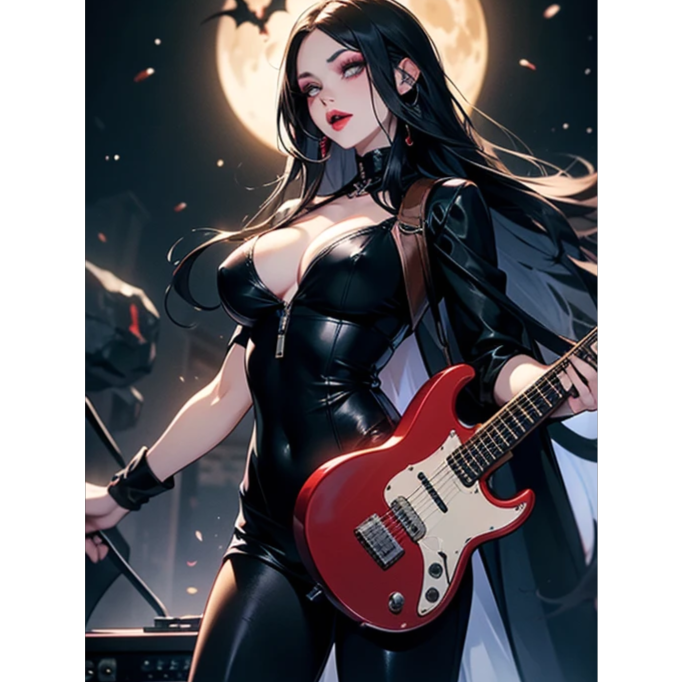 Female androgynous vocals, rock blues, pop, metal, electric guitar, bajo, bateria, teclado virtual