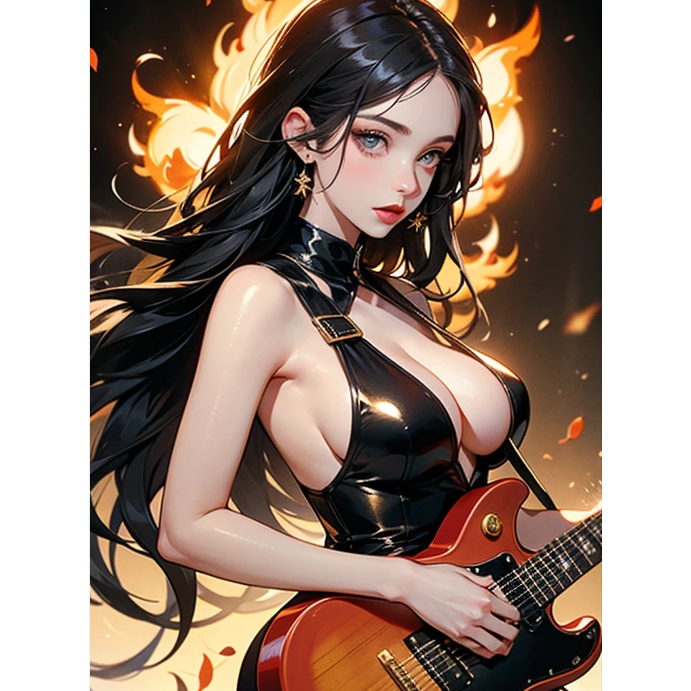 Heavy metal, classic rock, nu metal, synthe, Inspired electric guitar, inspired female vocals, pop, female voice, (A voice with strength and punch, often with a touch of hoarseness or natural distortion), slow, sexy, raspy, groove