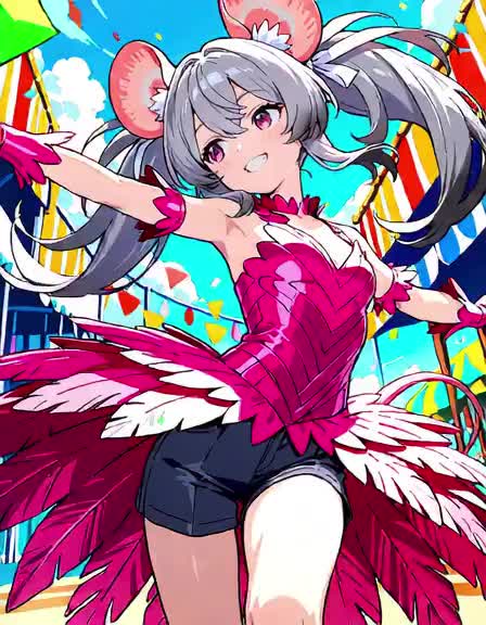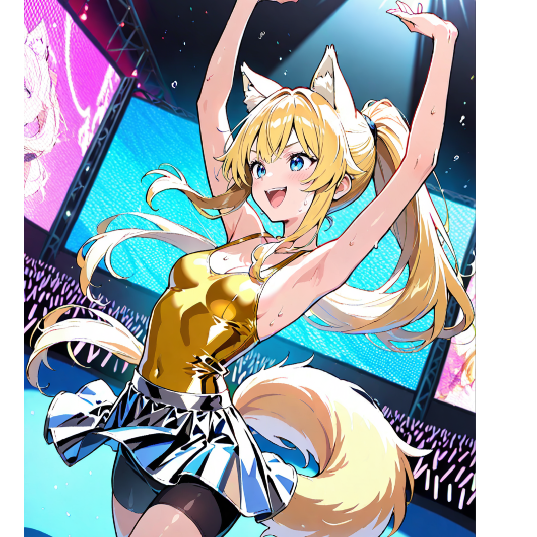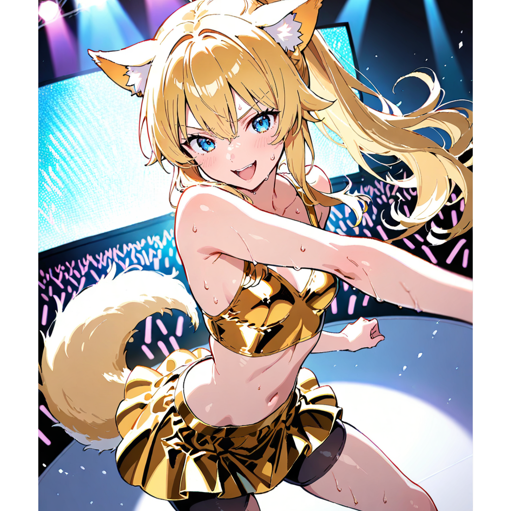 Eurobeat Style, BPM155, G Major, 4/4 Time Signature, High-energy female vocal trio with cheerful and expressive delivery, Bright and fast electronic beats with punchy kick drums, sharp claps, and syncopated hi-hats, Catchy and melodic synth leads, layered with driving synth bass, Powerful chorus sections with all three singers in unison, featuring chantable hook lines and call-and-response phrases, Verses are rhythmically phrased with playful tone, Instrumental bridge with arpeggiated synths and build-up effects, Short, energetic intro with a rising synth motif, Extended outro with vocal ad-libs and synth solo fade-out, No guitar or rock instruments, Focus on digital brightness, anime-inspired energy, and fast-paced party feeling, Perfect for a dance remix with festival vibes and colorful visuals