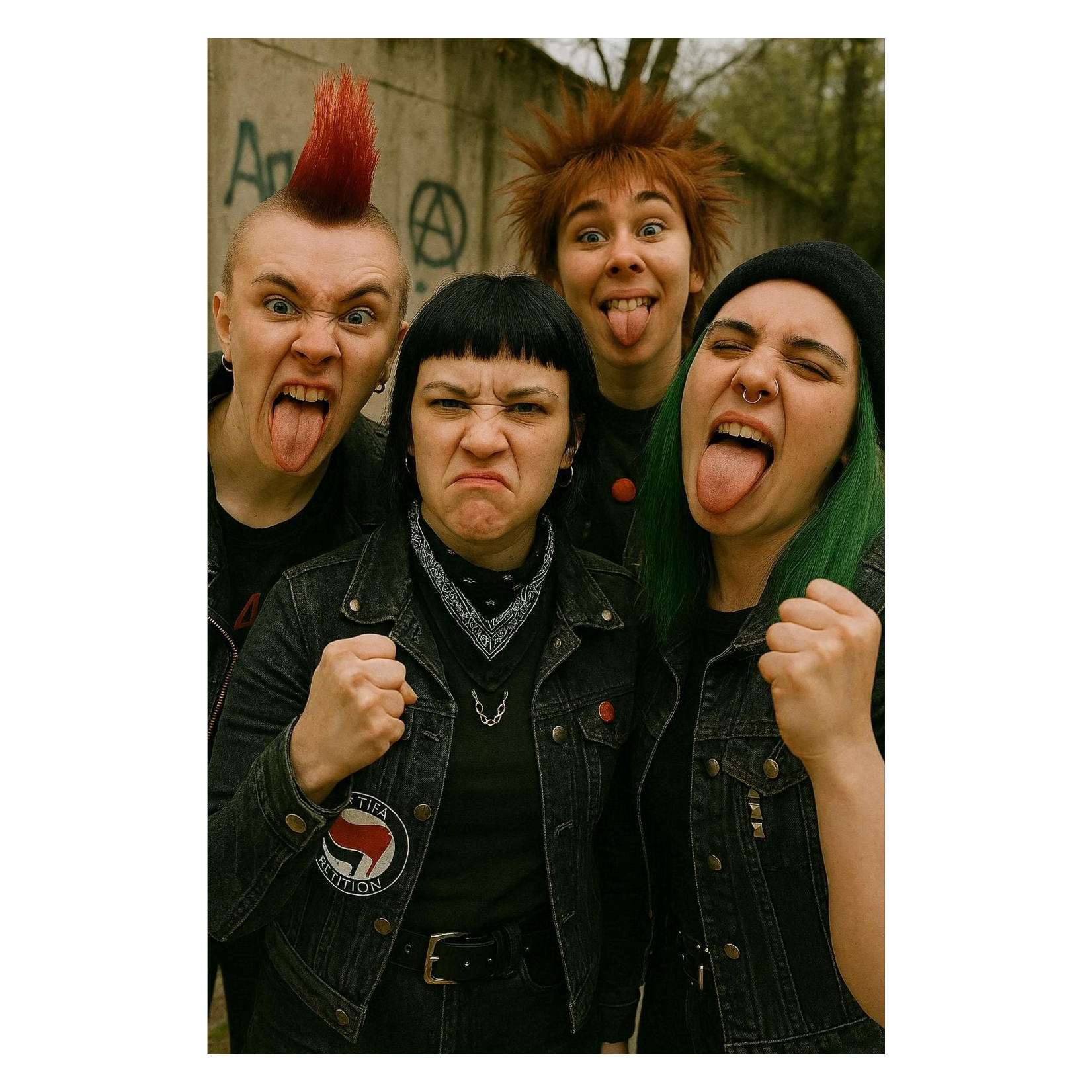 Create a fast, high-energy punk track with raw, slightly distorted guitars and a subtle surf-rock influence, Guitar should use simple power chords and occasional sloppy riffs, with light tremolo picking or reverb-dipped lines to hint at surf-punk tones, Basslines are repetitive and steady, locking in with drums that are energetic but imperfect, sometimes rushing or lagging, giving a live, chaotic feel, Vocals should be shouted, urgent, and slightly rough, full of raw emotion and sincerity, The overall performance should feel like a group of enthusiastic, inexperienced musicians playing together — messy, intense, and heartfelt, with a touch of surf-style brightness and bounce in the guitar