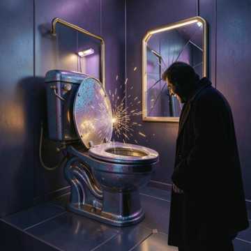 Cyberpunk-themed industrial electro-pop at 128 BPM in E minor, The track features a distorted male vocal with heavy bitcrushing and vocoder effects, alongside female spoken word samples, A gritty, syncopated sawtooth synth bass drives the low end, while sharp, metallic percussion and glitchy drum machine patterns provide the rhythm, High-pitched, arpeggiated digital synths and siren-like lead lines create a dense electronic texture, The arrangement uses frequent tape-stop effects, stutter edits, and sudden filter sweeps, A clean, processed female vocal enters for melodic sections, contrasting with the aggressive, spoken-word male delivery, The percussion includes industrial claps, gated snares, and digital hi-hat rolls