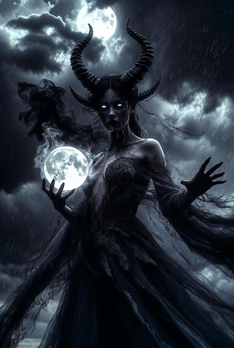 Cinematic metal with raspy feminine rage and atmospheric groove, darkwave electropop with progressive metal architecture and sacred horror undertones featuring poppy and instrumental rock, progressive metal, hard rock, Drop C, 68 BPM ethereal intro, 78 BPM verses, 95 BPM chorus, 82 BPM 5/4 bridge, 98 BPM final chorus fading to 65 BPM outro, In This Moment-style vocals with Maria Brink commanding theatrical range β haunting cleans flipping to powerful screams and seductive growls, Thick Red Thread Rage chugs with 808 subs, sidechain pump, high-pass clarity, and atmospheric depth, Mastered -10 LUFS for cinematic space, Moon in my veins β I am the tide, I am the pull, I am the night that never dies