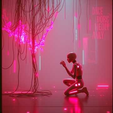 Erotic, dark electro-rock with industrial and tribal elements, Female vocals lead the track with sensual whispers, seductive moans (“aaah”, “oooh”, “siiiii”, “iiih”), and explosive, commanding choruses, Deep distorted bass, hypnotic synth arpeggios, gritty guitar riffs, and cinematic build-ups, The mood is provocative, dominant, mystical—an electric ritual where human lust overrides any artificial force, The voice must feel divine, uncontainable, teasing and overwhelming like a techno-goddess claiming control, Include pulsing electronic textures, breathy vocal layers, and tempo changes for maximum drama, The bridge grows from slow, teasing murmurs to a feral, ecstatic climax, The track must feel like a futuristic nightclub exorcism: primal, magnetic, untamed, Add eerie pads and glitchy percussions during instrumental sections, Final outro fades into breath and low bass throb, Style is bold, rebellious, erotic, powerful—absolutely unforgettable