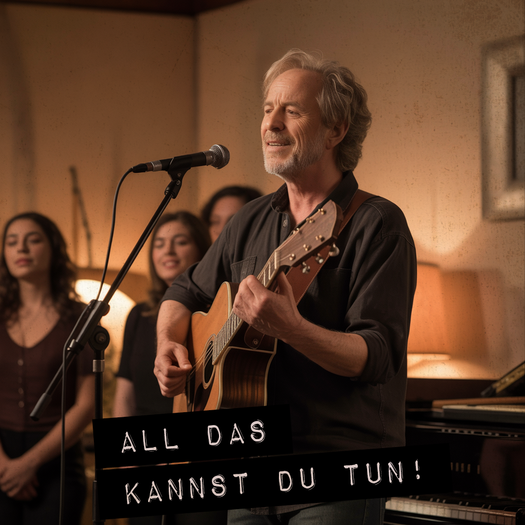A modern, uplifting charity song for an older, experienced male singer with a rough voice should be performed in a warm, intimate setting, creating a heartfelt and gentle atmosphere, The arrangement remains mostly unplugged and slow, with soft, subtle jazz rhythms influencing the phrasing delicately without changing the core genre, Percussion is minimal or omitted to keep the mood serene and tender, The background choir appears sparingly and gently, adding emotional warmth at key moments without overwhelming the vocals, The singer’s clear, distinct pronunciation conveys sincerity and deep emotion, Overall, the song is calm and reflective, inviting the listener into a personal, soothing experience full of compassion and quiet strength