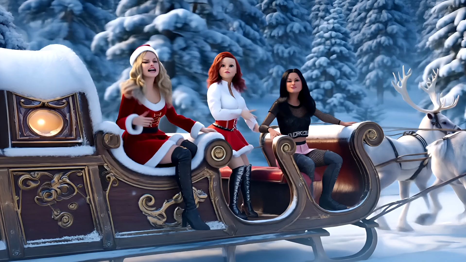 Upbeat Mariah Carey Christmas anthem, Four different Female vocals, dirty Hip Hop, hard Rap, Girlgroup, Girl band, super aggressive, Breakbeat, very dirty, mad