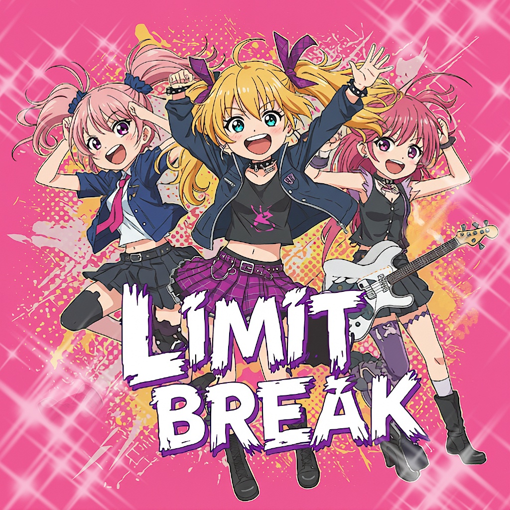 girls band, pop rock, j-pop, anime, fast tempo, pop rock, eurobeat, happy hardcore, teenager girl vocals